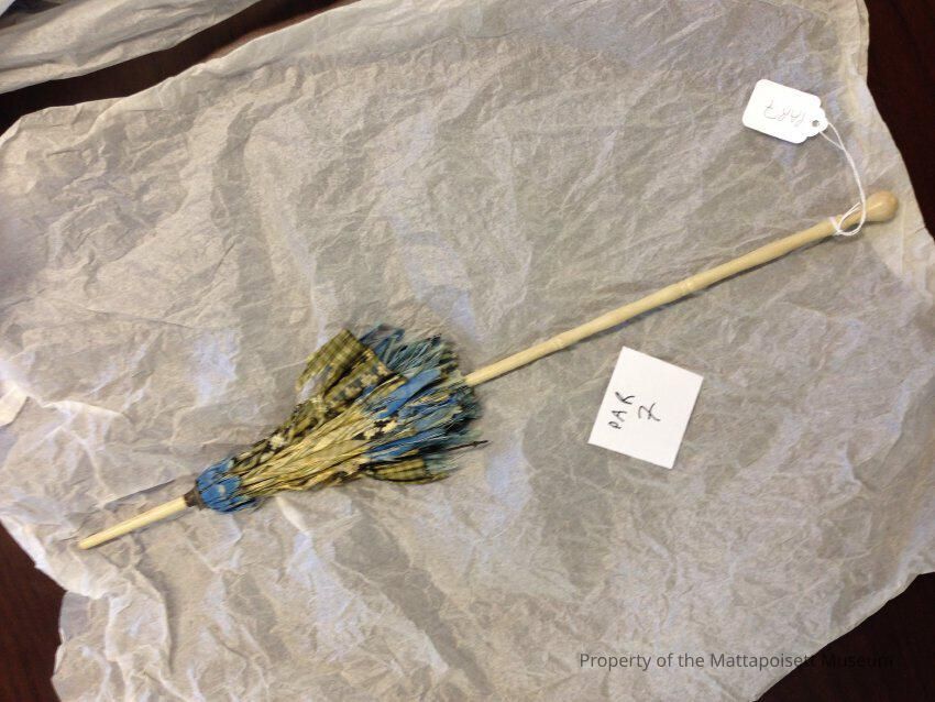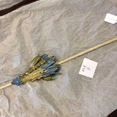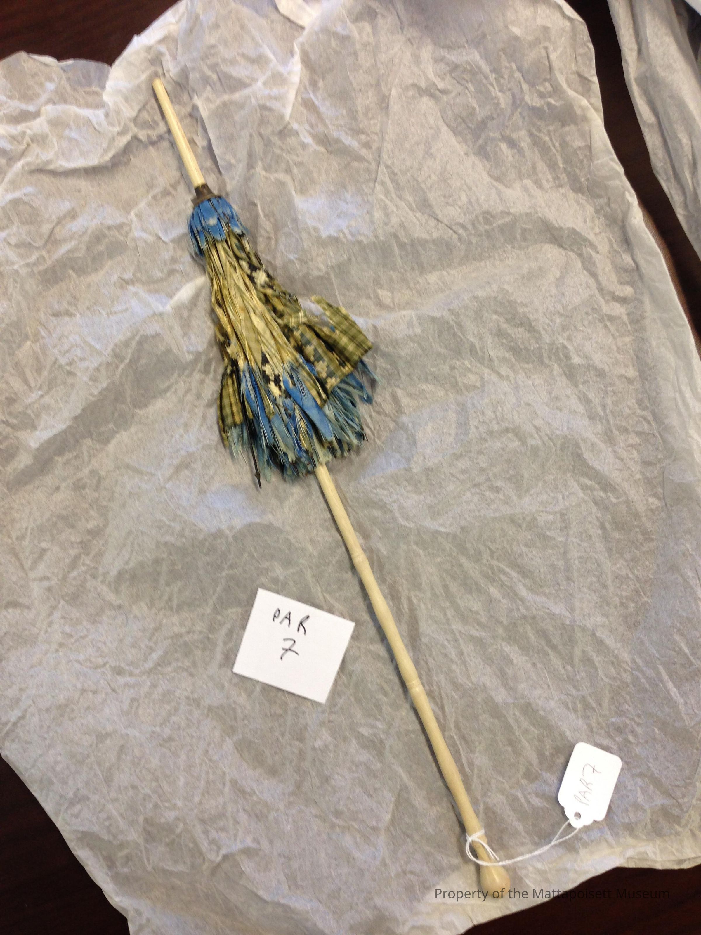 Child's parasol. Plaid with blue silk trim. White wood handle.Collection