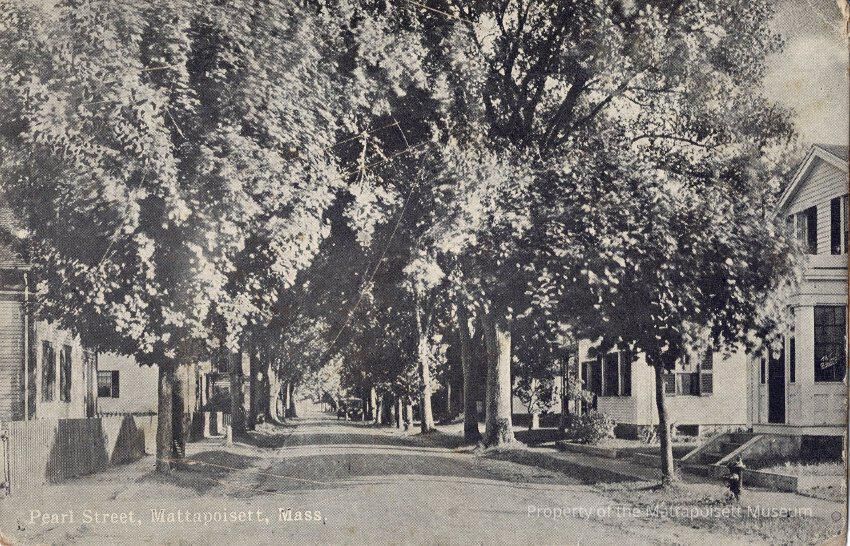 Black and white postcard showing Pearl Street, Mattapoisett, Mass.Collection