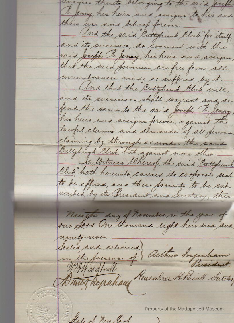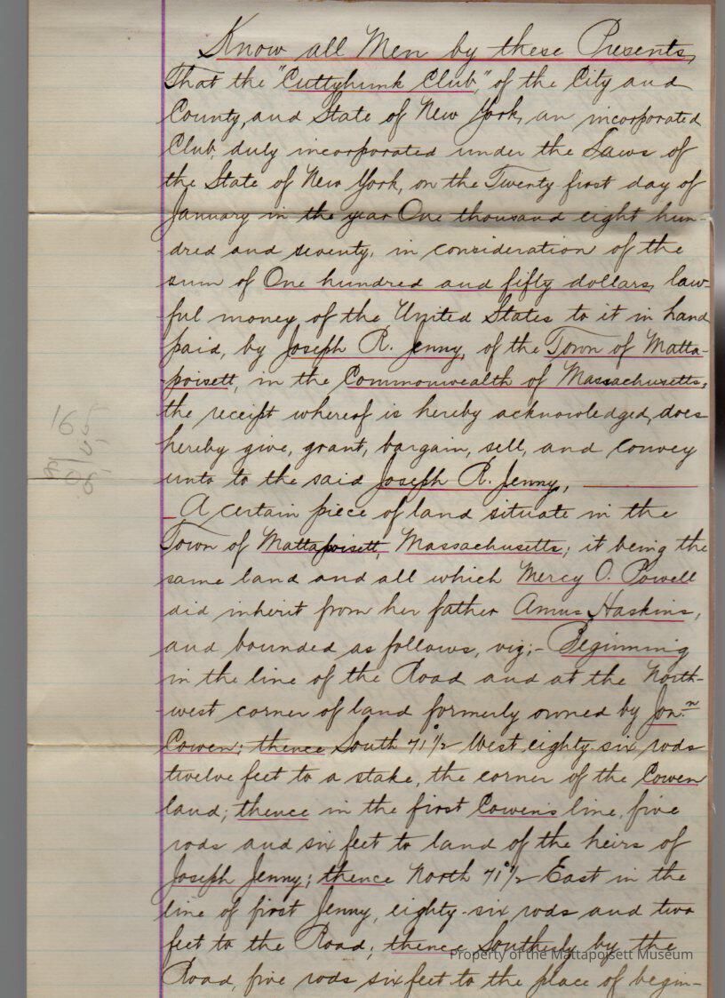 Cuttyhunk Club of New York City to Joseph R. Jenney, land for $150.Collection