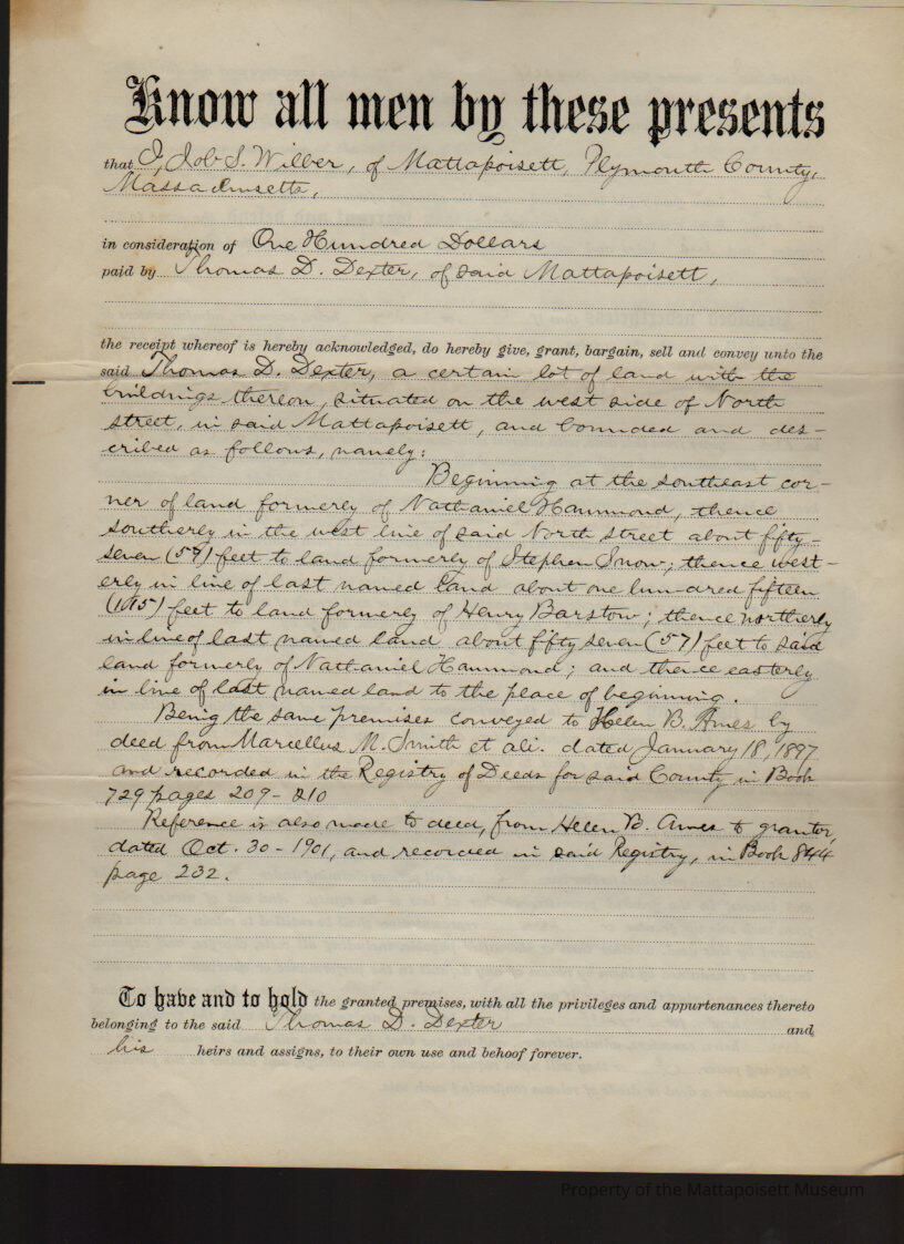 Job S. & Adeline H. Wilber to Thomas D. Dexter, land and buildings on west side of North Street for $100.