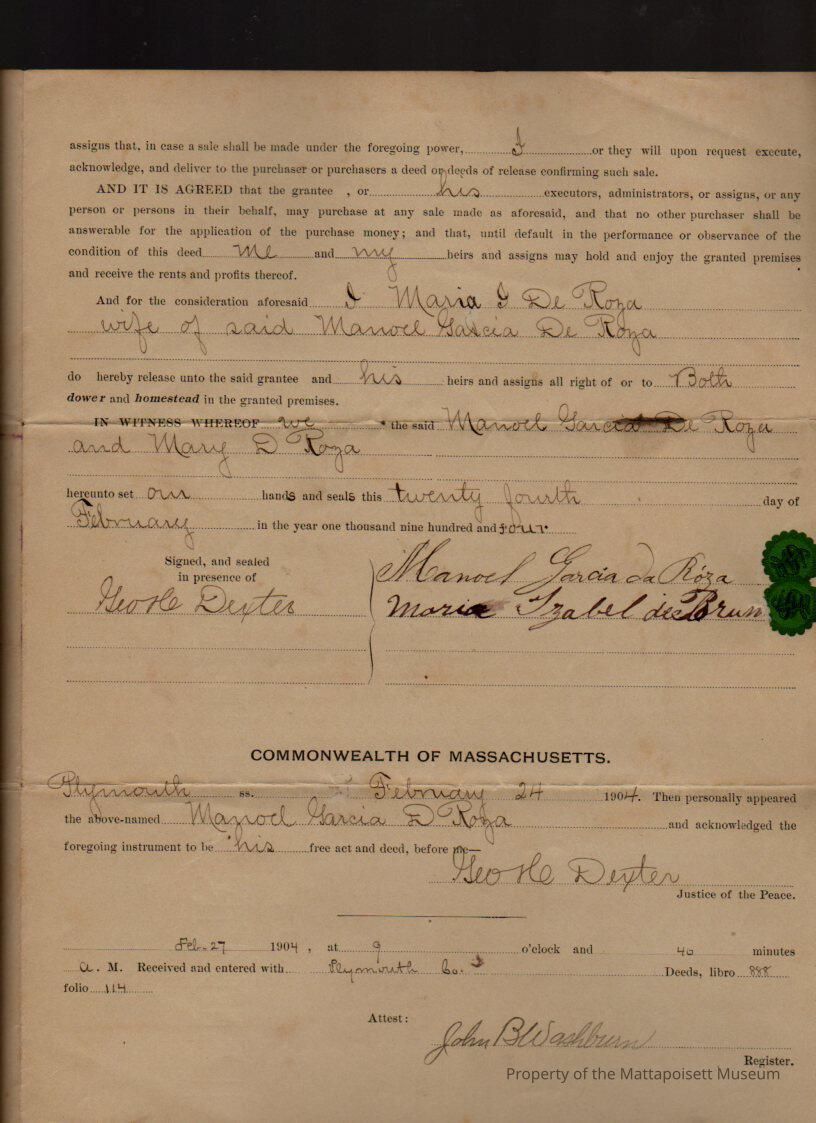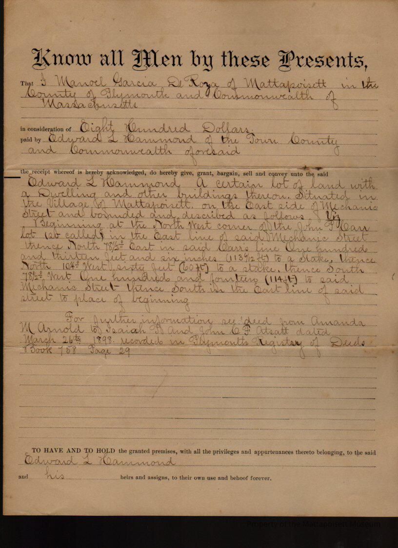 Manuel Garcia & Maria Izabel de Roza to Edward L. Hammond, land, dwelling house and buildings on the east side of Mechanic Street for $800.Collection
