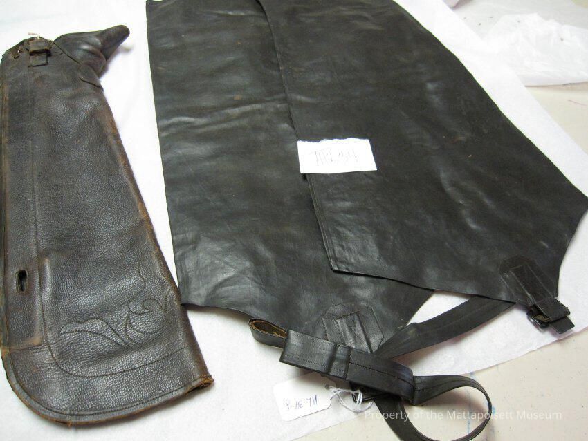 Two pairs of leggings. 8 leather, 9 rubberCollection