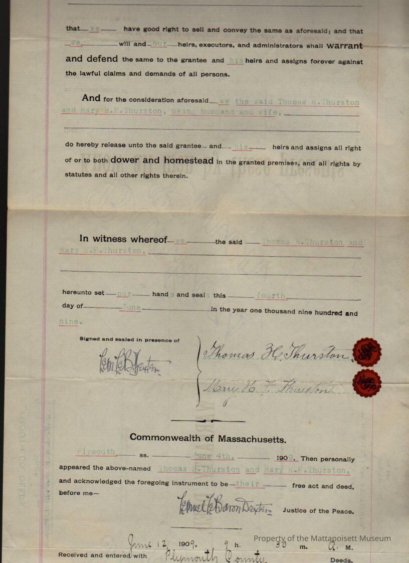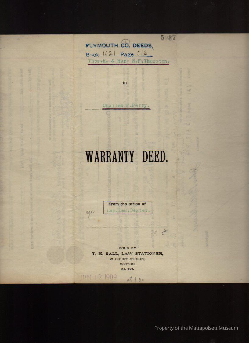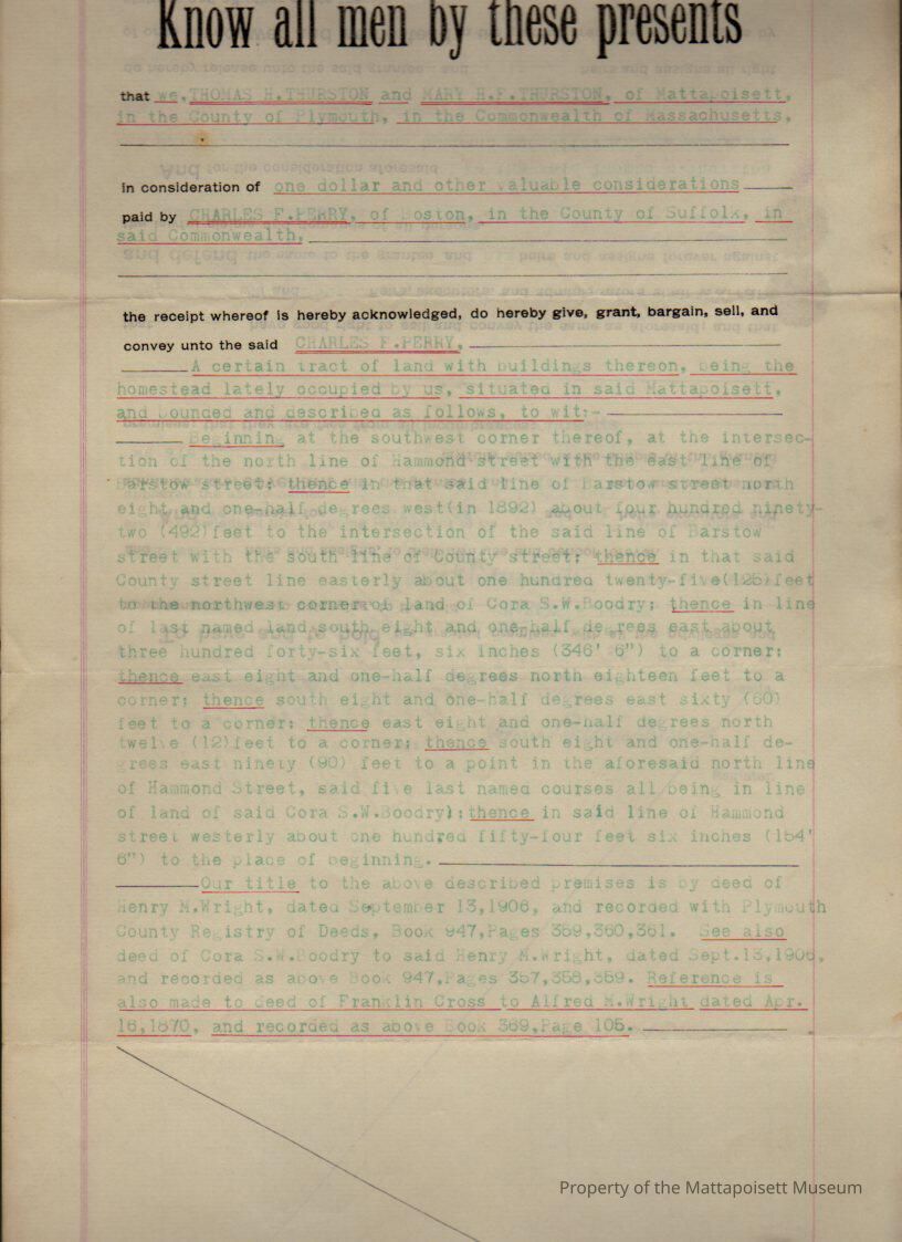 Thomas H. & Mary H. Thurston to Charles F. Perry of Boston, land with buildings for $1 and other valuable considerations.Collection