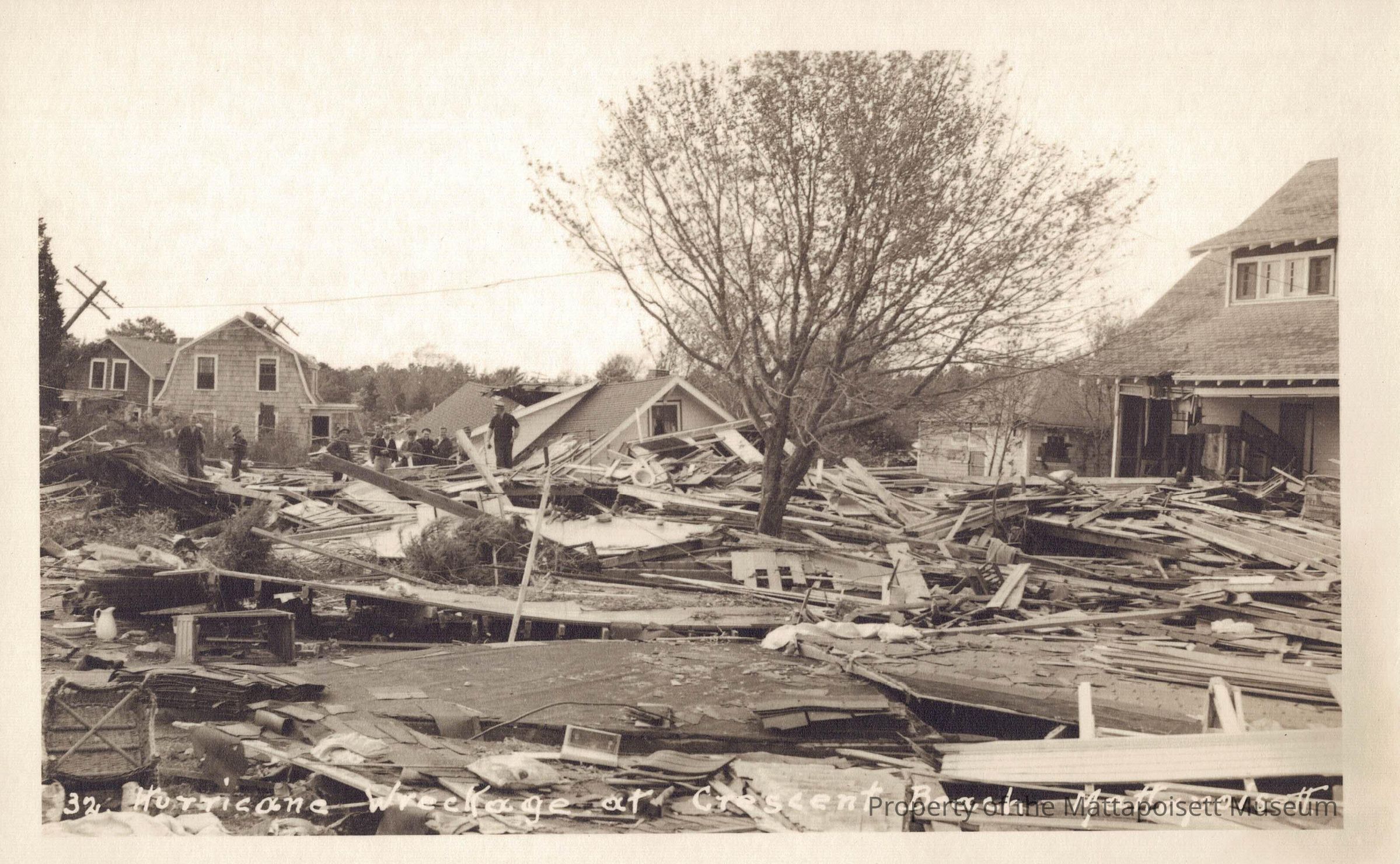 Black and white postcard showing Hurrican Wreckage at Crescent Beach, Mattapoisett, Mass.Collection