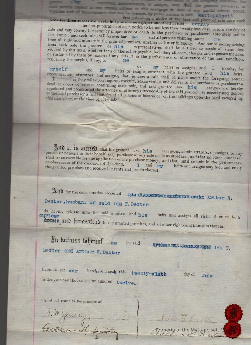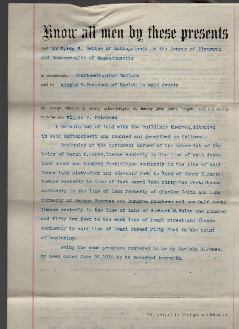Ida T. & Arthur H. Dexter to Viggo V. Peterson of Marion, land and buildings on west side of Pearl Street for $1,400.Collection