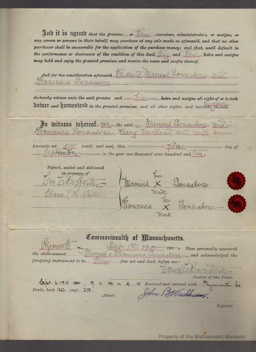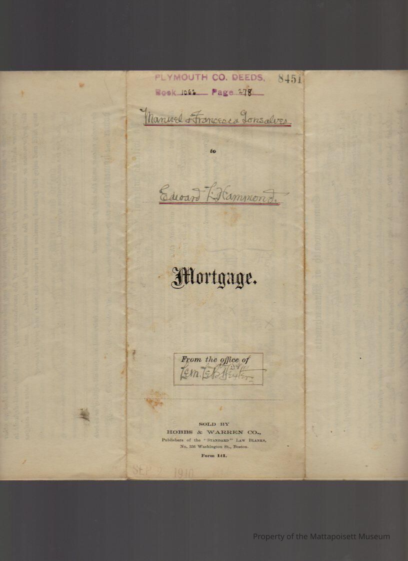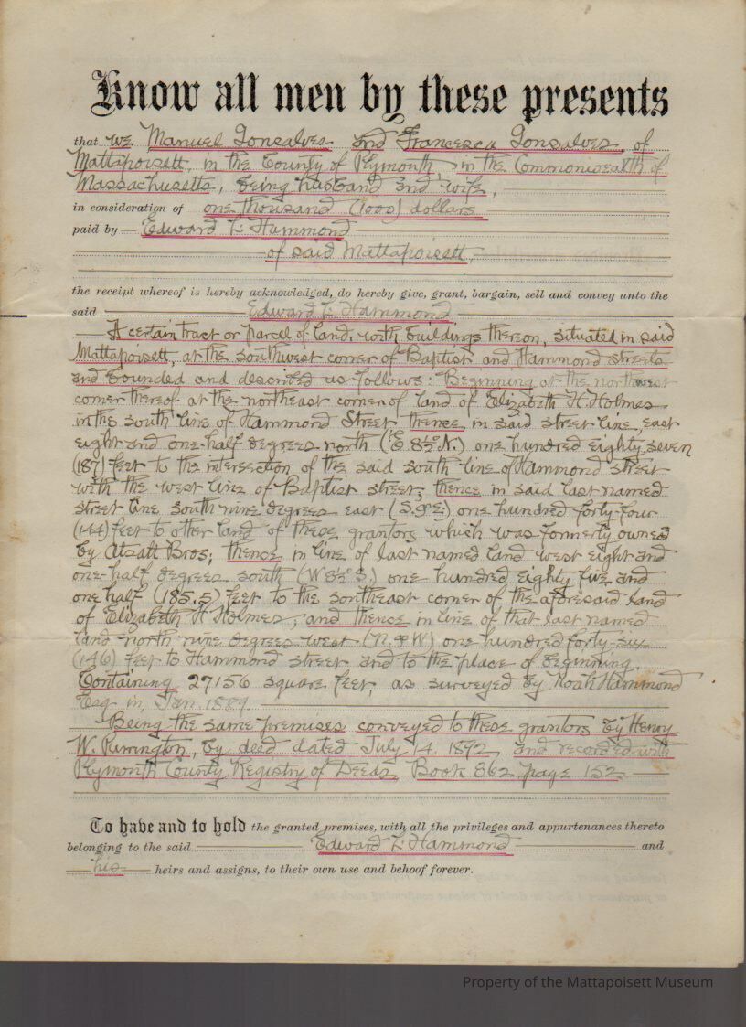 Manuel & Francesca Gonsalves to Edward L. Hammond, land and buildings on southwest corner of Baptist and Hammond Streets for $1,000.Collection