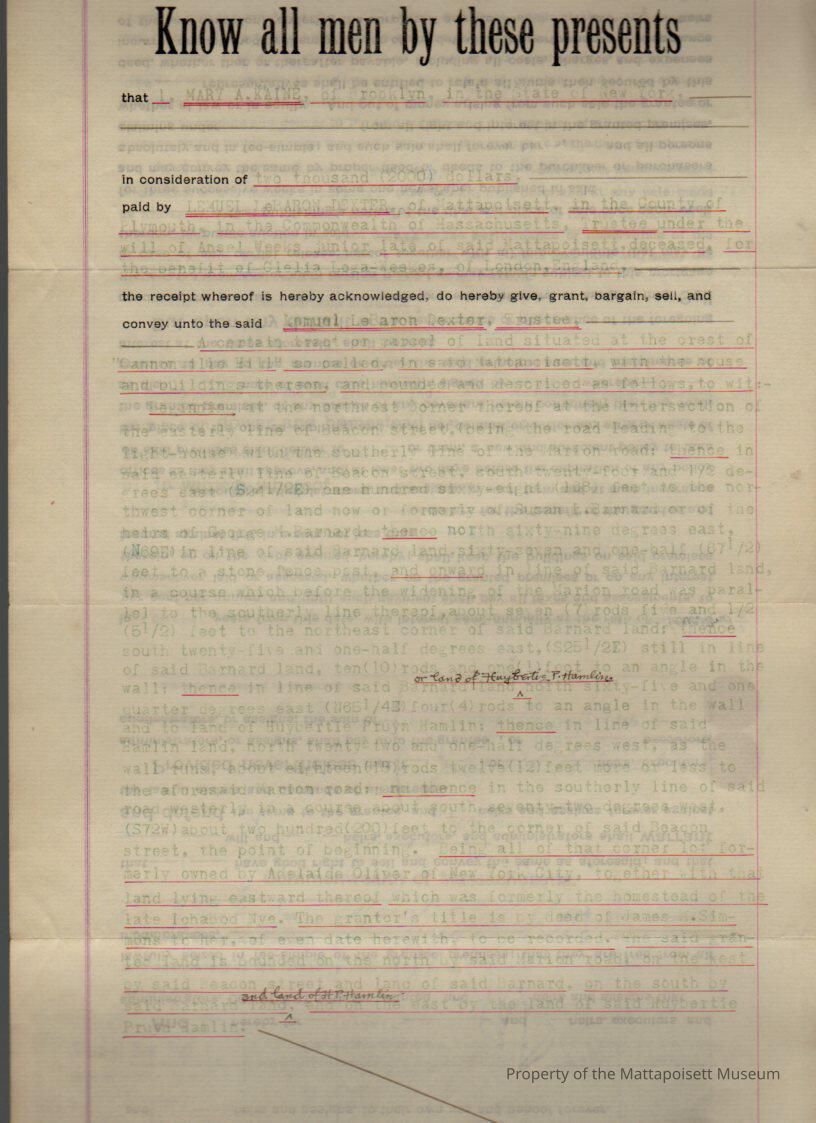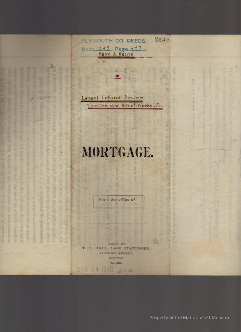 Mary A. & James Kaine to Lemuel LeBaron Dexter, trustee under the will of Ansel Weeks Jr., for the benefit of Clelia Lega-Weekes, land at the crest of "Cannonville Hill" with house and buildings for $1,000.Collection