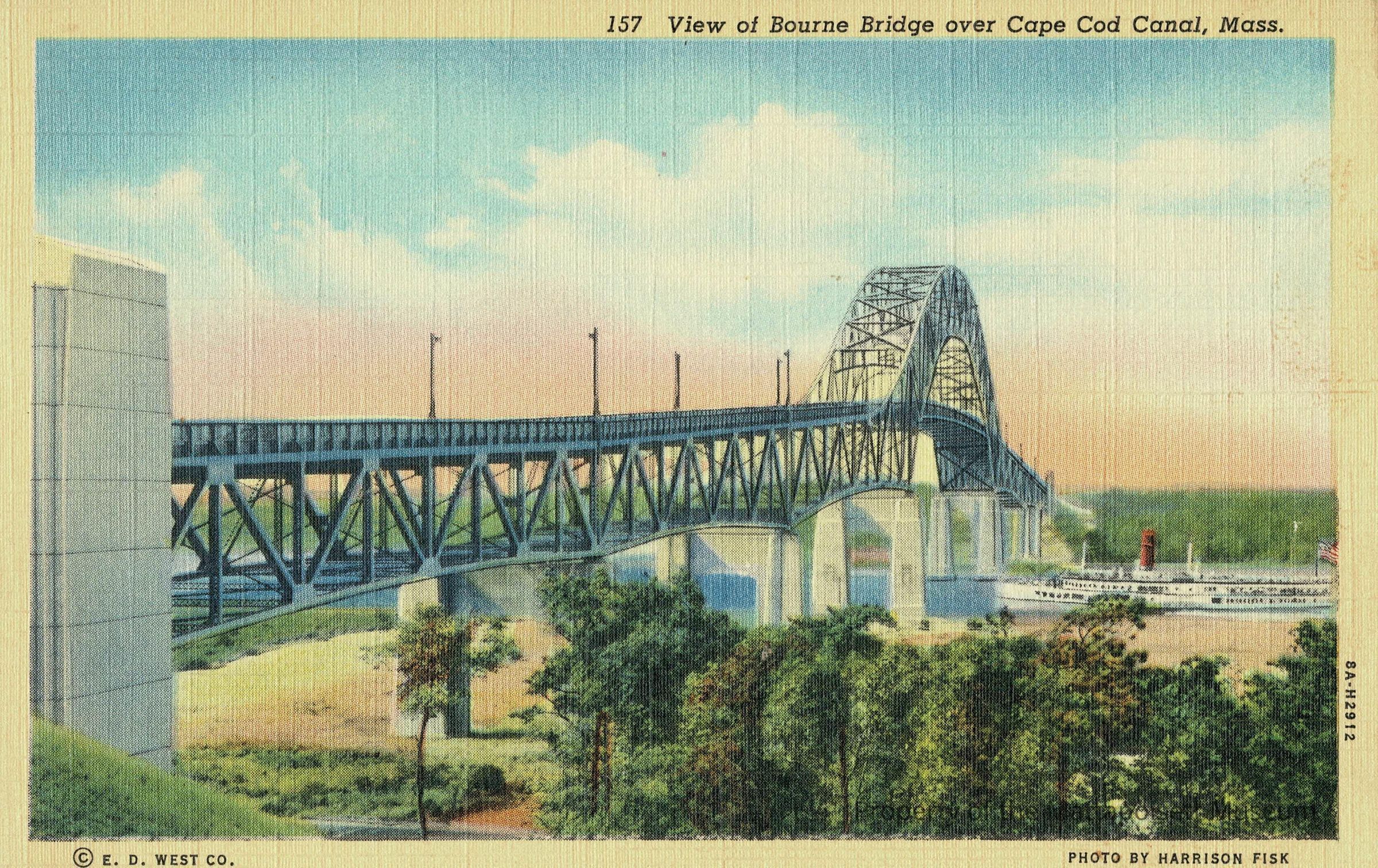 Hand-colored postcard showing "View of Bourne Bridge over Cape Cod Canal, Mass."Collection