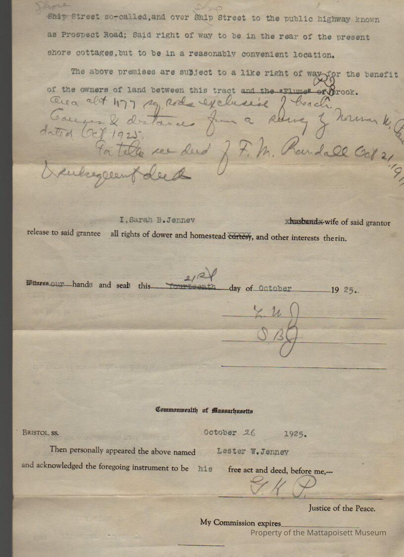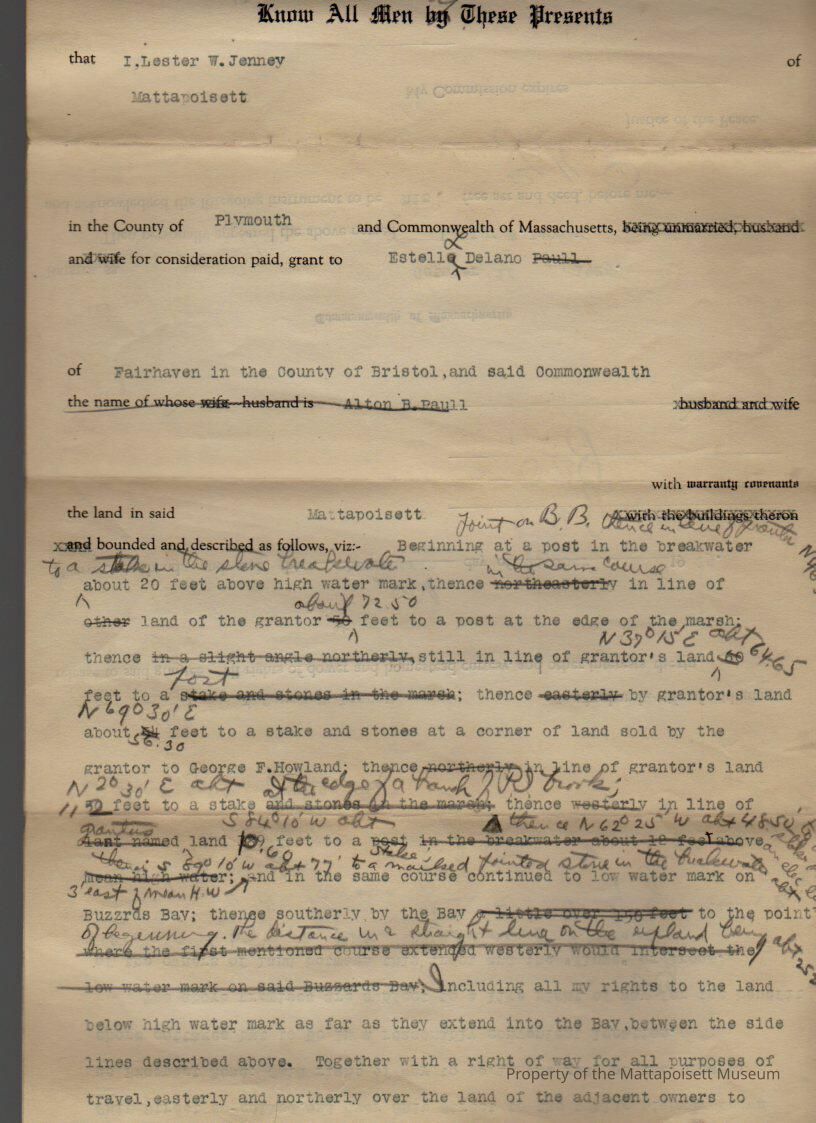 Lester W. & Sarah B. Jenney to Estella L. Delano of Fairhaven, land in Mattapoisett. Draft, many changes.Collection