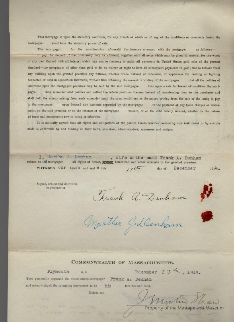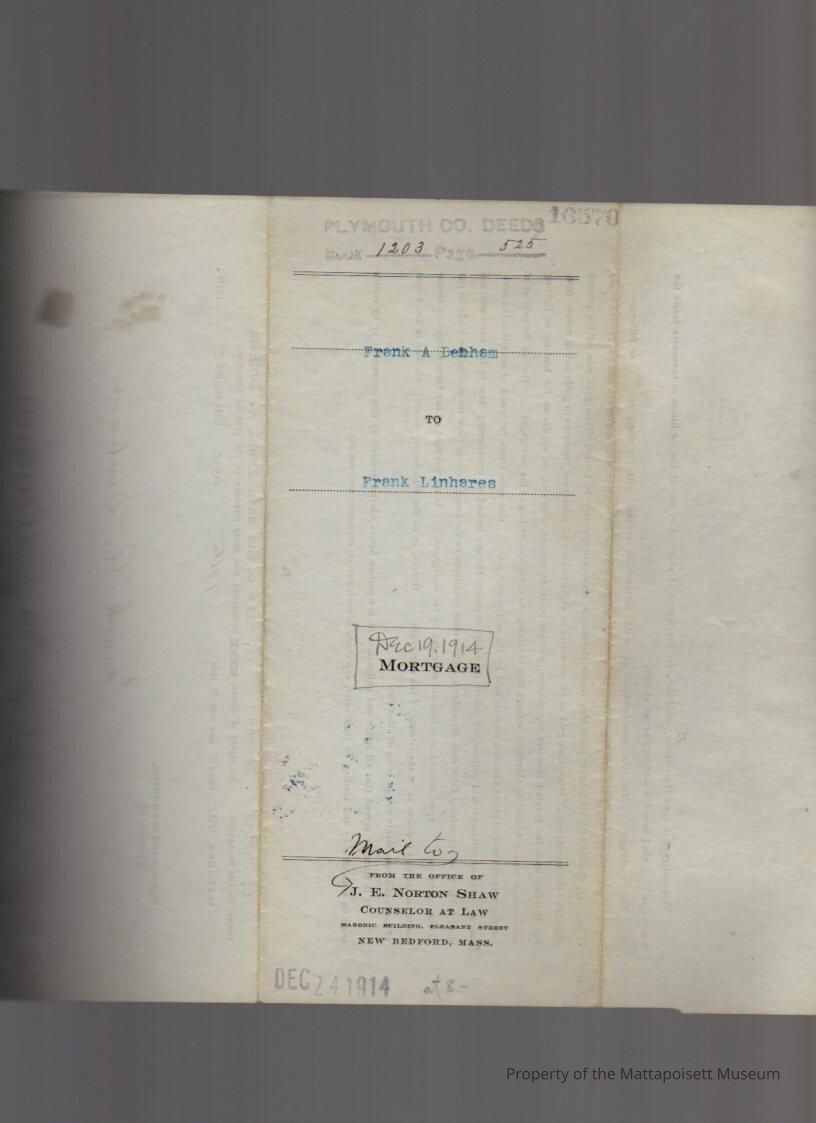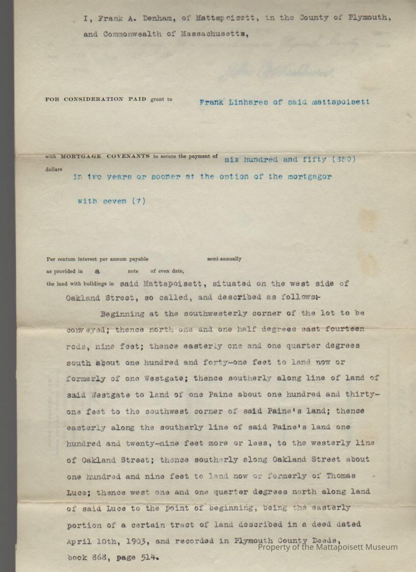 Frank A. & Martha J. Denham to Frank Linhares, land on the west side of Oakland Street for $650 over two years.Collection