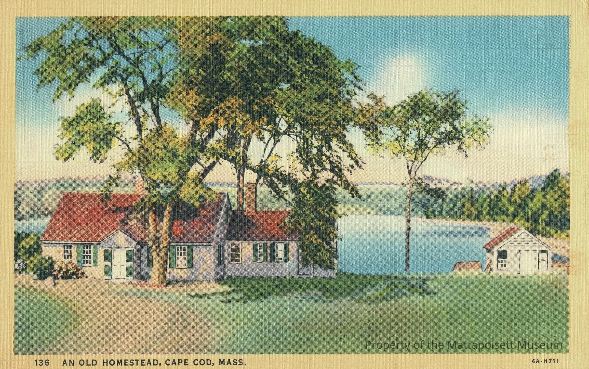 Hand-colored postcard showing An Old Homestead, Cape Cod, Mass.Collection
