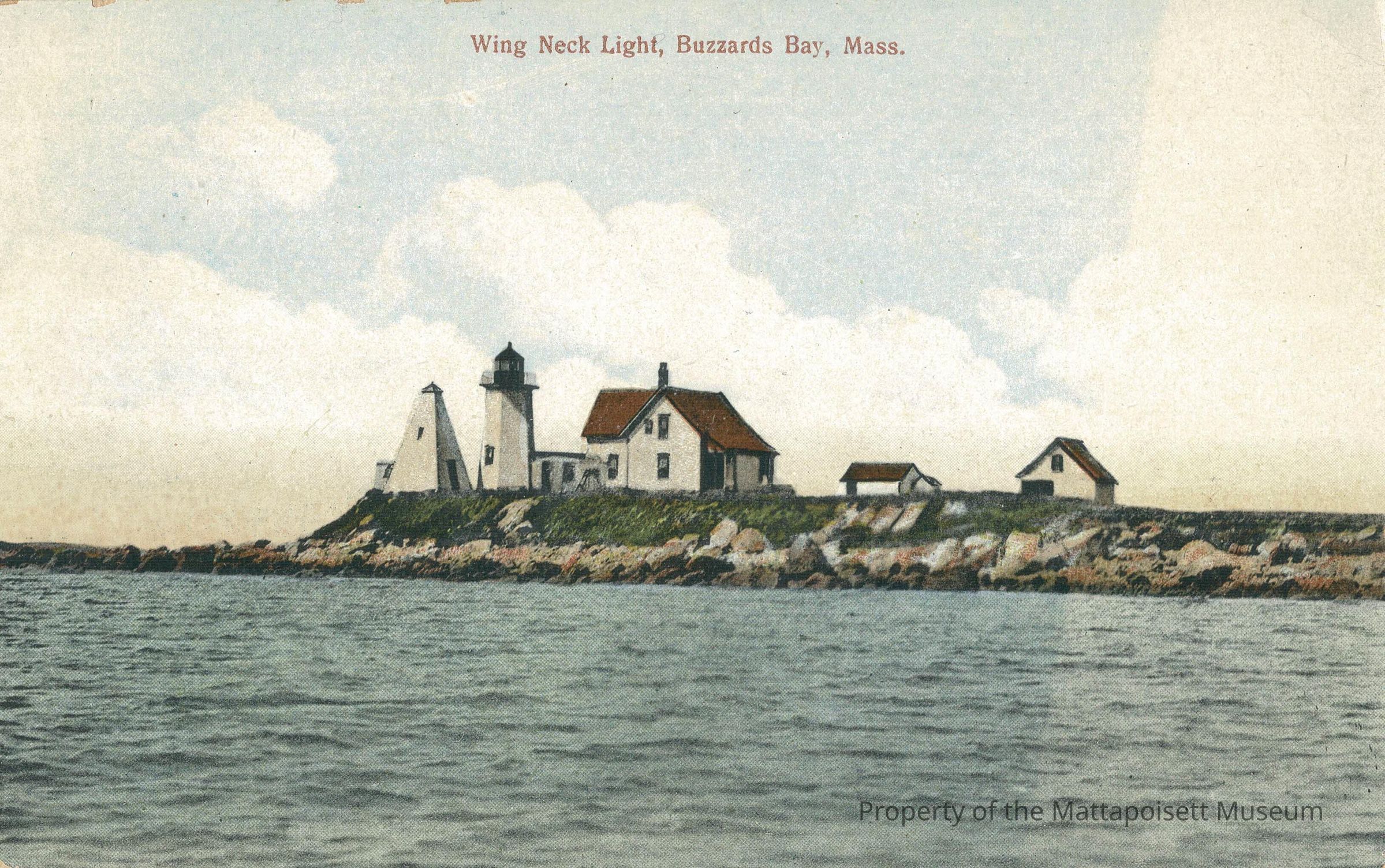 Hand-colored postcard showing Wing Neck Light, Buzzards Bay, Mass.Collection