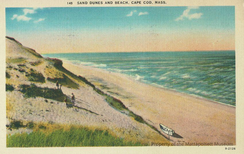Hand-colored postcard showing Sand Dunes and Beach, Cape Cod, Mass.Collection