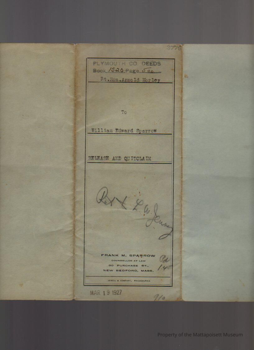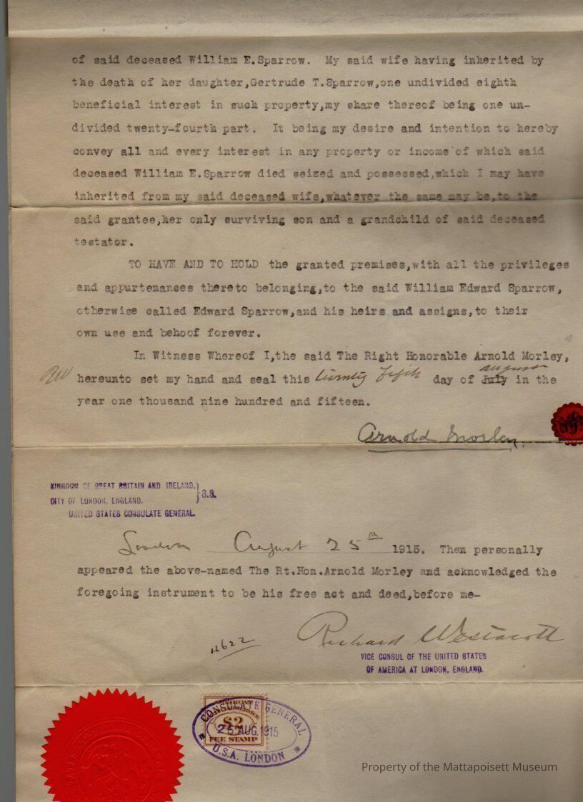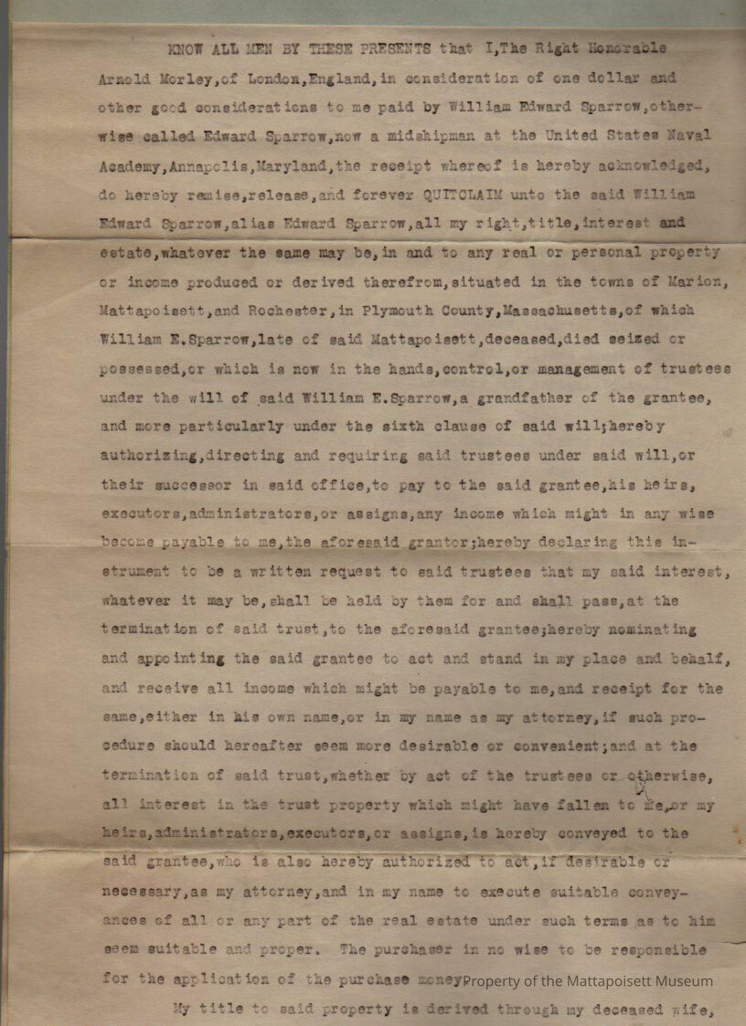 Arnold Morley of London, England to William Edward Sparrow in US Naval Academy, land for $1 and other good considerations.Collection
