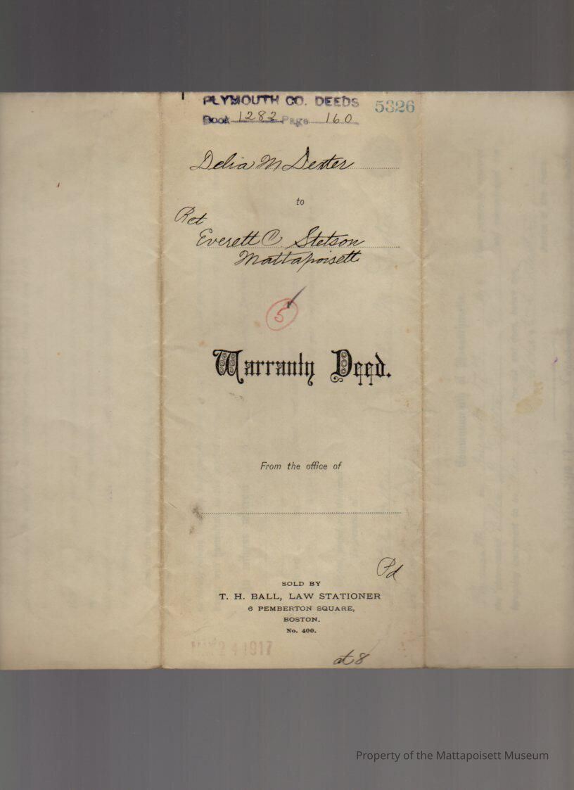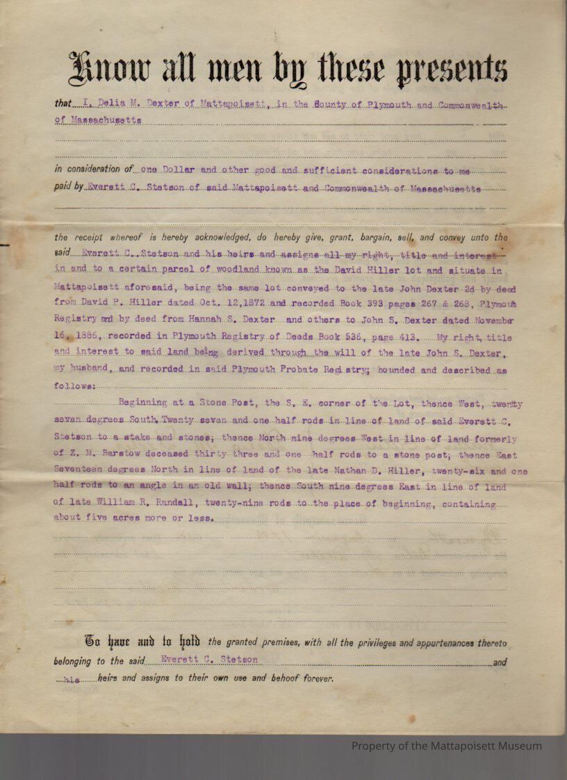 Delia M. Dexter to Everett C. Stetson, 5 acres woodland known as "David Hiller Lot" for $1 and other good and sufficient considerations.Collection