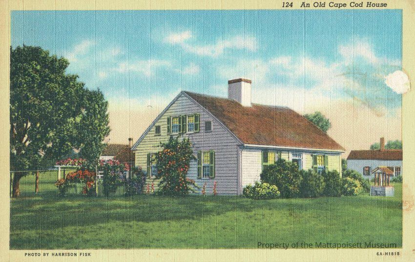 Hand-colored postcard showing An Old Cape Cod House.Collection