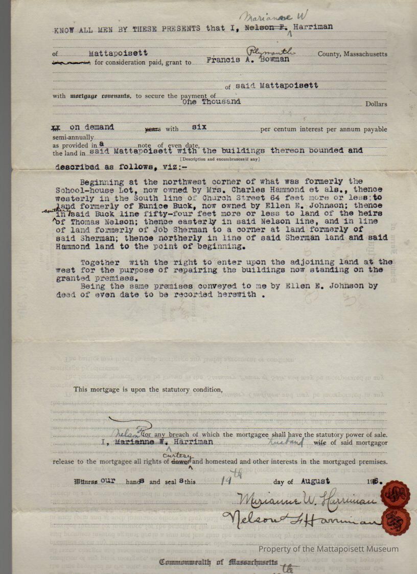 Marianne W. & Nelson F. Harriman to Francis A. Bowman, land and buildings for $1,000.Collection