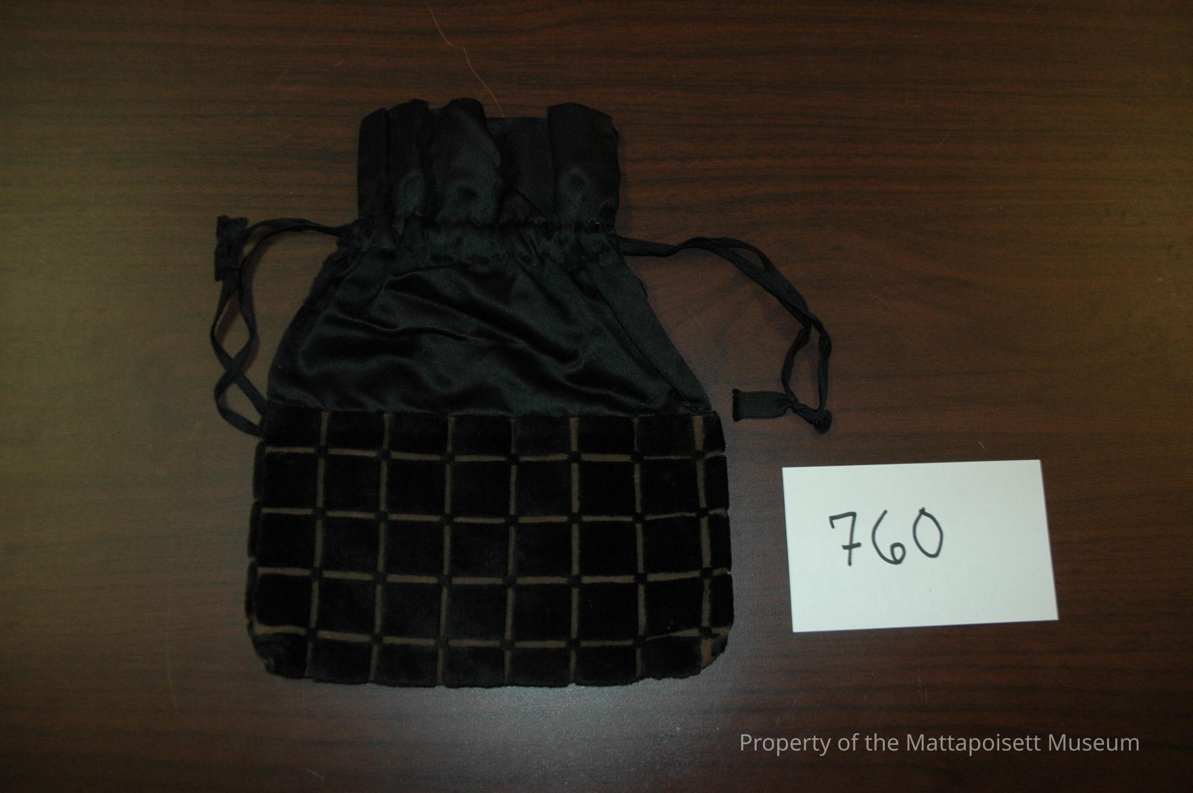 Half black velvet and half black satin, black drawstring bag, 11" x 9"Collection