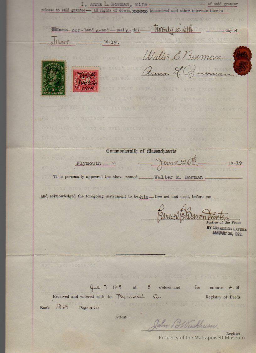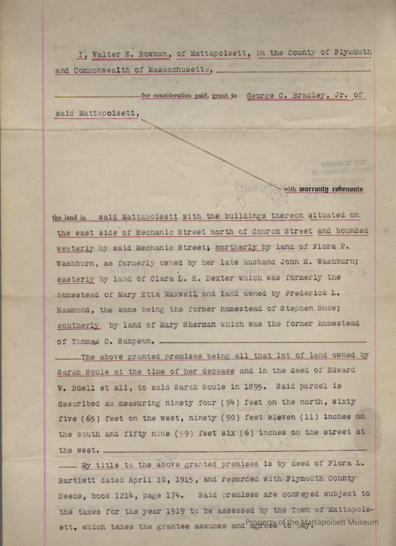 Walter E. & Anna L. Bowman to George C. Bradley Jr., land and buildings on the east side of Mechanic Street, north of Church Street.Collection
