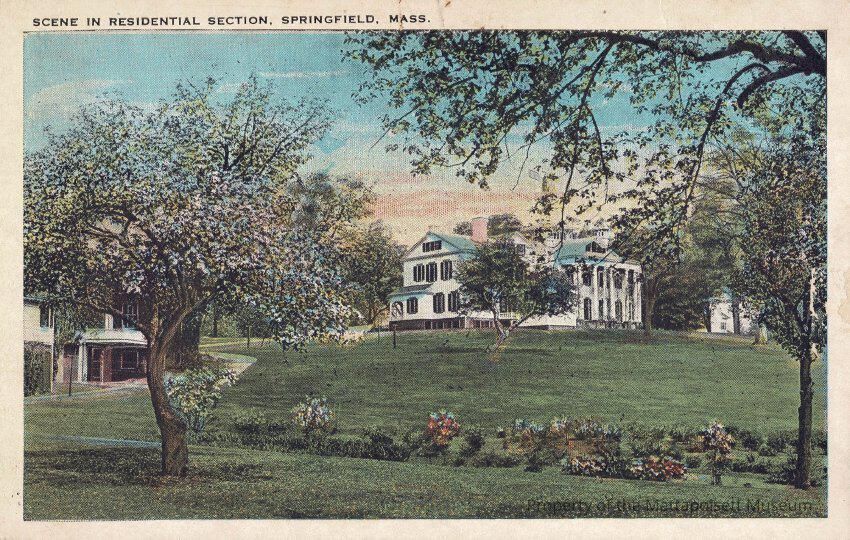 Hand-colored postcard showing Scene in Residential Section, Springfield, Mass.Collection