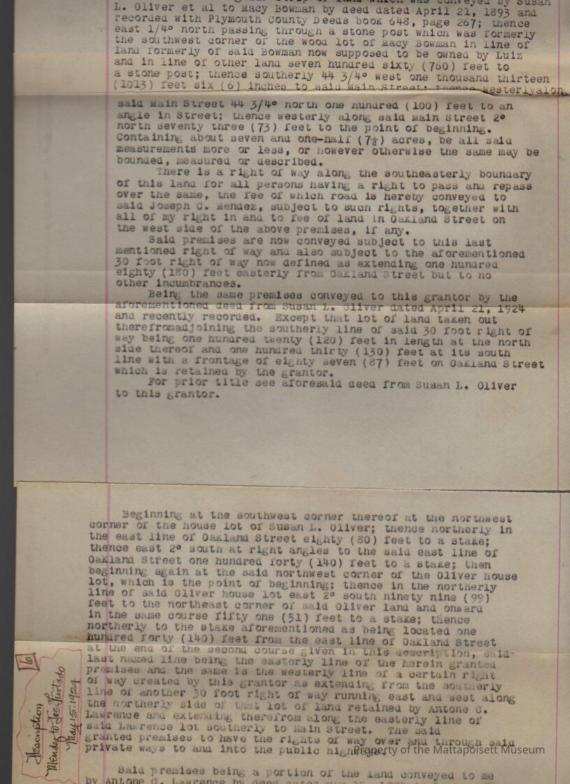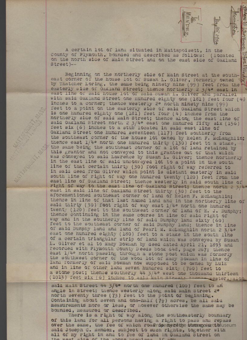 Description of land Antone C. Lawrence to Joseph Mendez.Collection