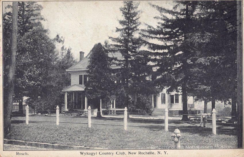 Black and white postcard showing Wykagyl Country Club, New Rochelle, N.Y. Handwritten note to Mrs. George Purrington, Mattapoisett, Mass. (forwarded to 40 Somersett Avenue, Taunton, Mass.). Postmarked Mattapoisett, Mass. on November 24, 1910.Collection