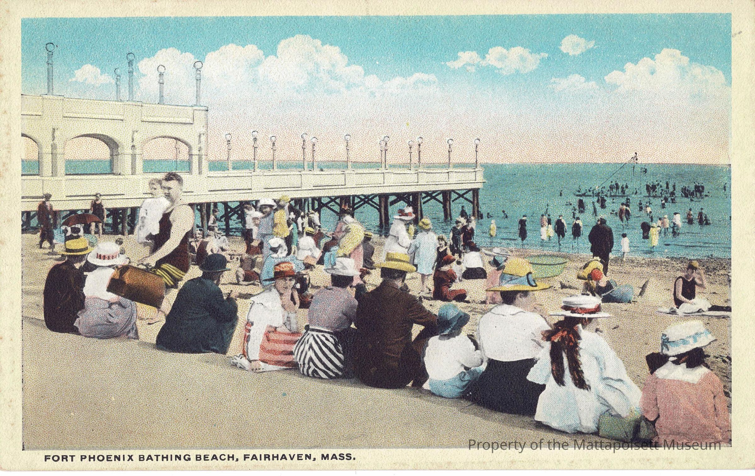 Hand-colored postcard showing Fort Phoenix Bathing Beach, Fairhaven, Mass.Collection