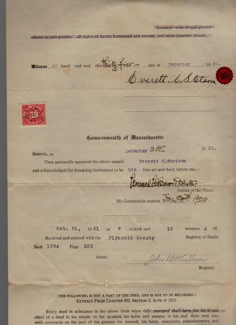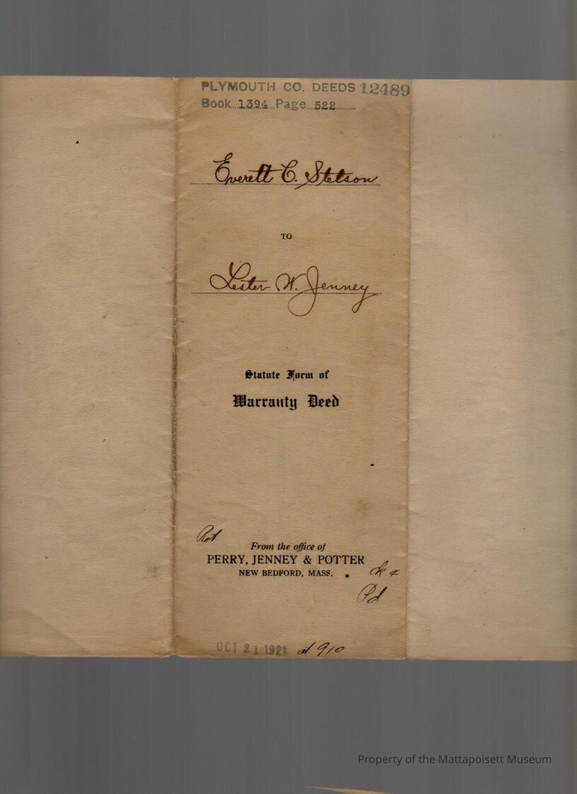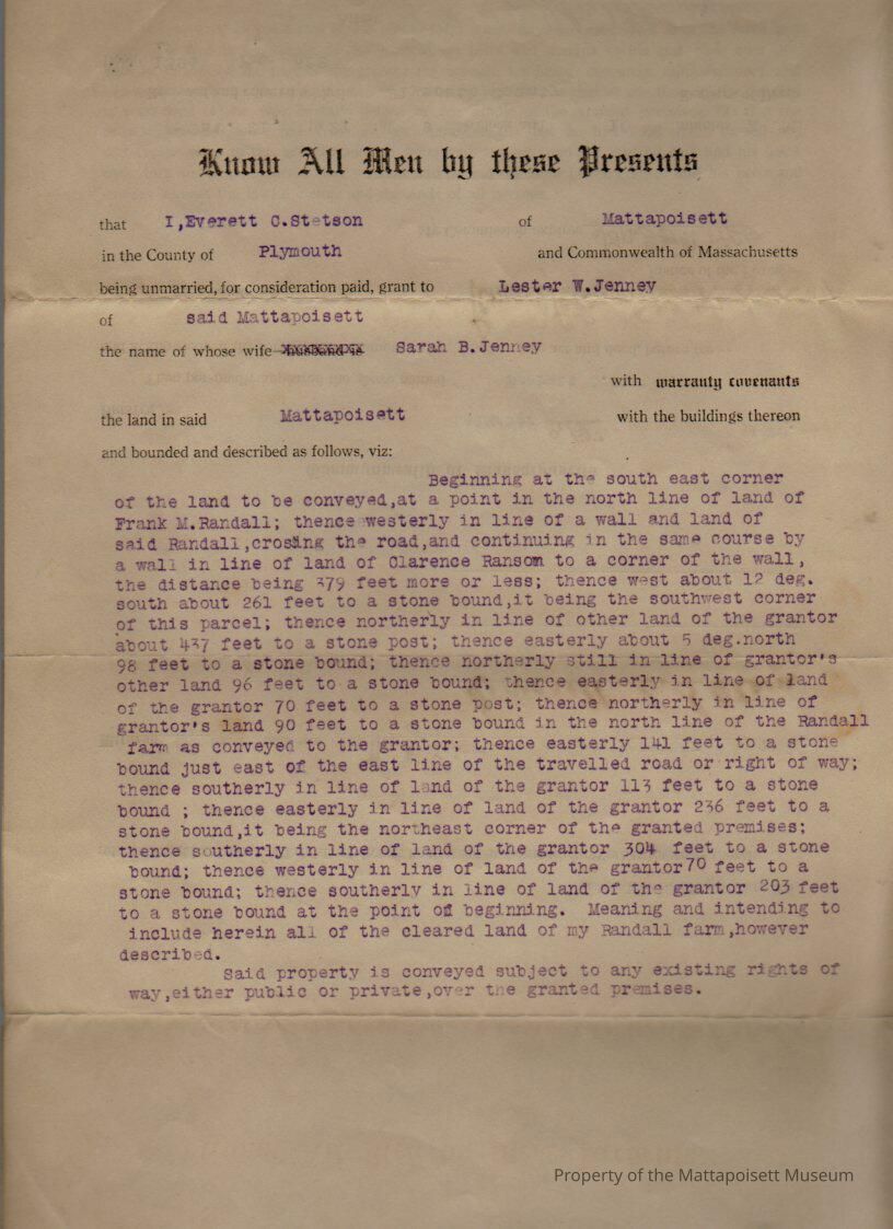 Everett C. Stetson to Lester W. & Sarah B. Jenney, deed.Collection