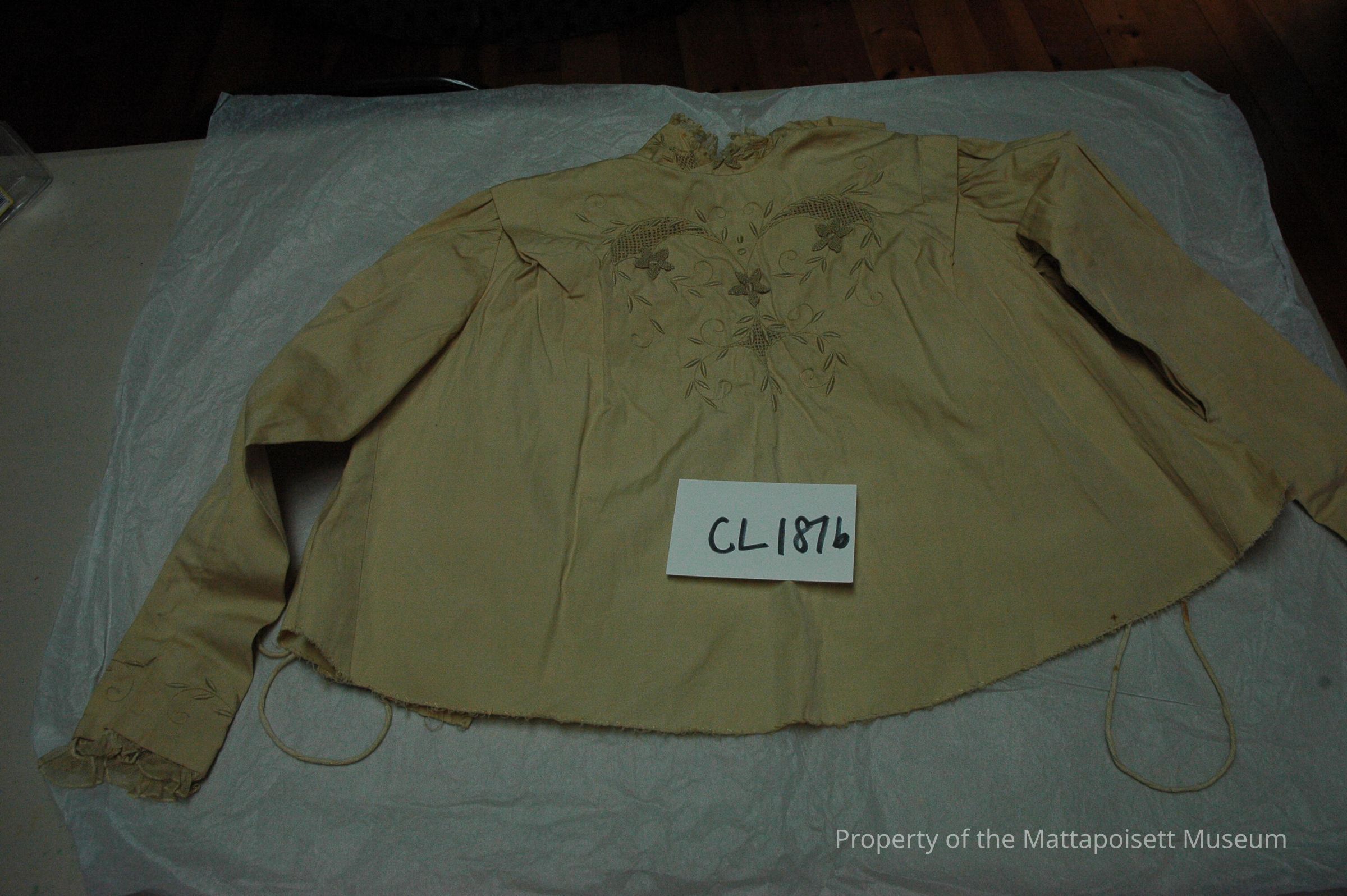 Notes: Notecard and old description: Ecru shirt waist with embroidered and crocheted flowers.Created By