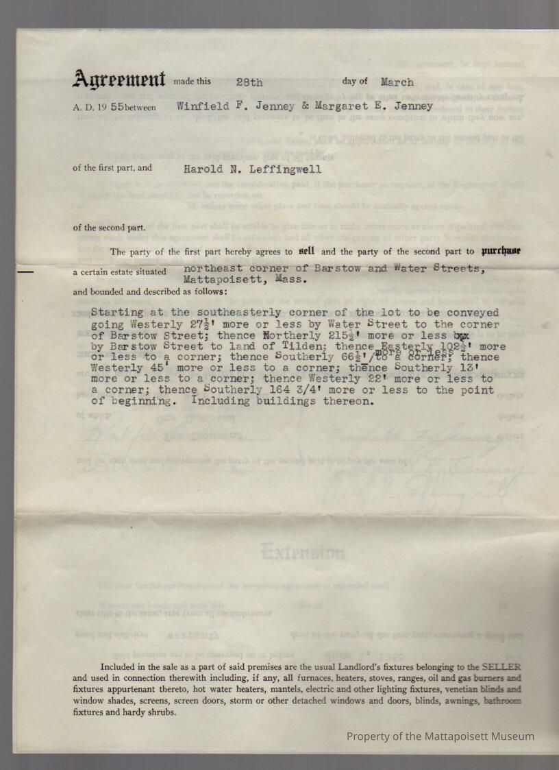 Winfield F. & Margaret F. Jenney to Harold N. Leffingwell, land and buildings on northeast corner of Barstow and Water Streets for $10,000.Collection