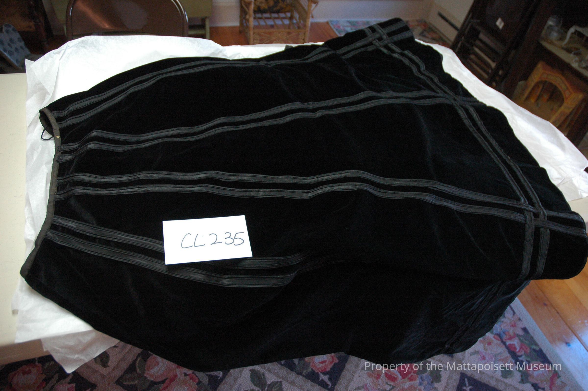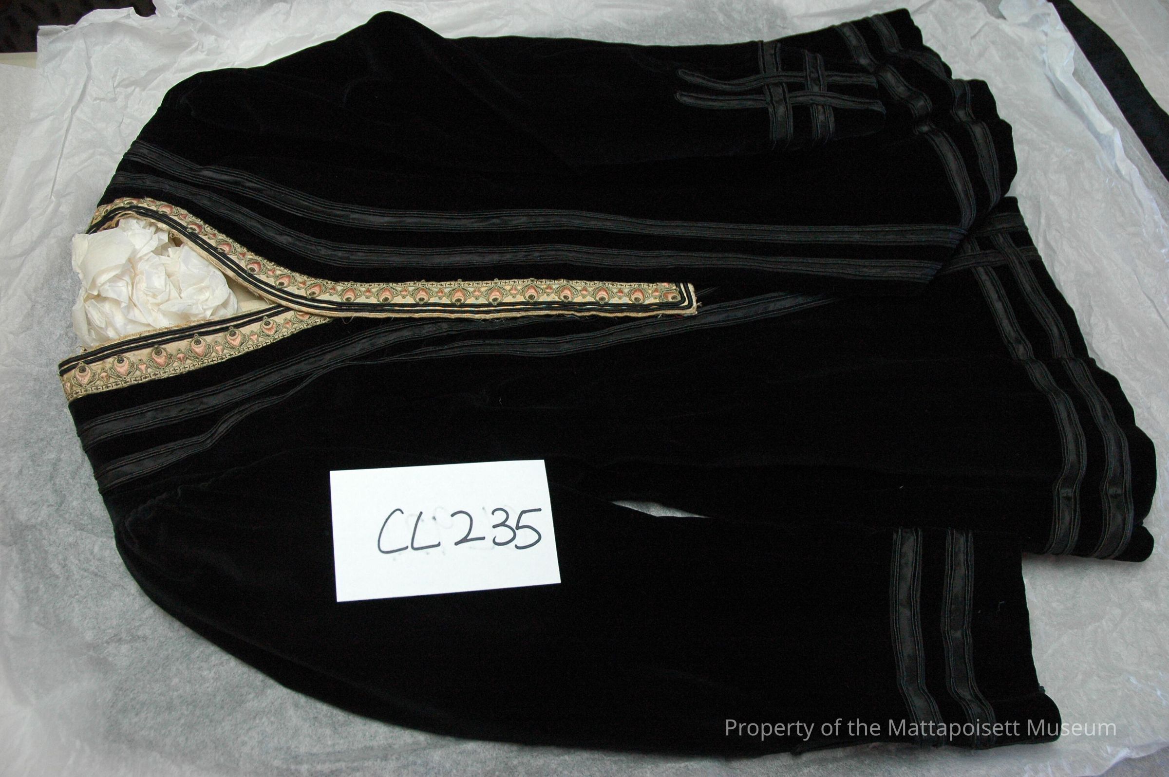 Notes: Notecard: Black velvet suit, braid trim. (3rd item on card)