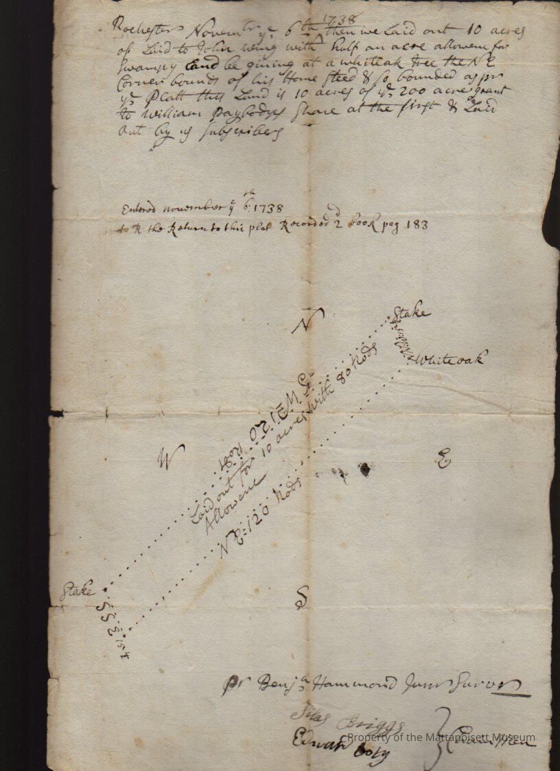 Plan of land of 10 acres laid out to John Wing, with half an acre allowed for swampy land. Benjamin Hammond Jr., surveyor.Collection