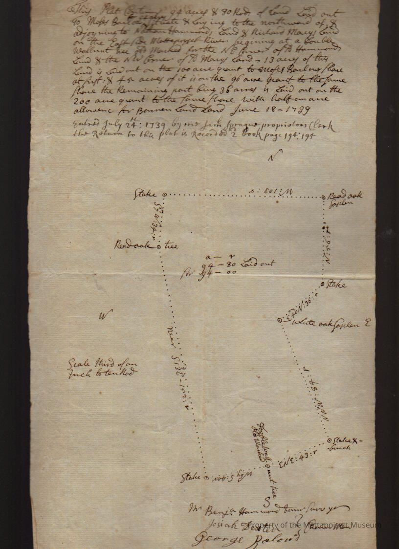 Plan of land containing 94 acres and 80 rods laid out to Moses Barlow. Benjamin Hammond, surveyor.Collection