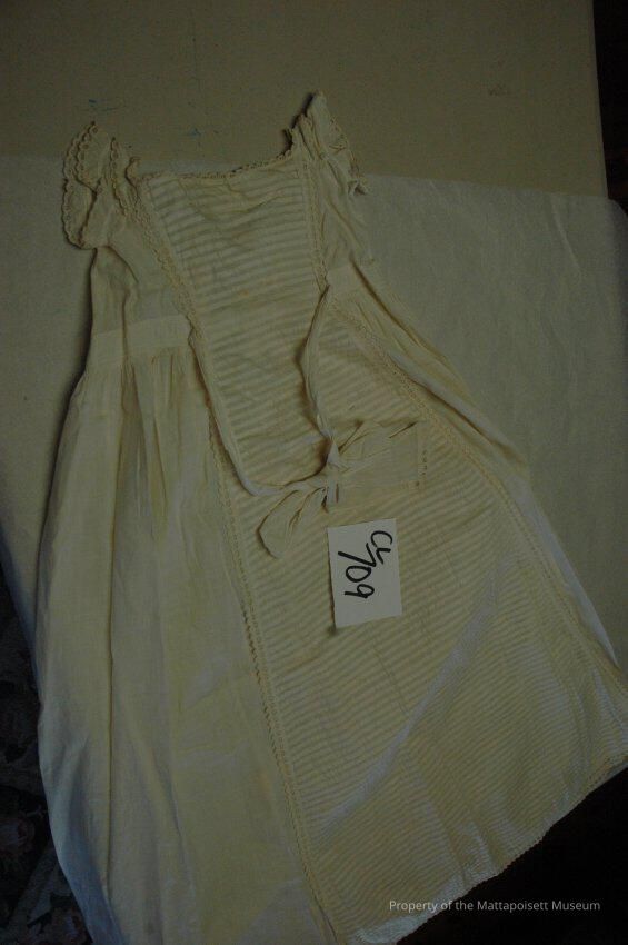 Notes: Notecard: CL122, Reciept #709. Long baby dress, tucked front. Sash back, sleeves.