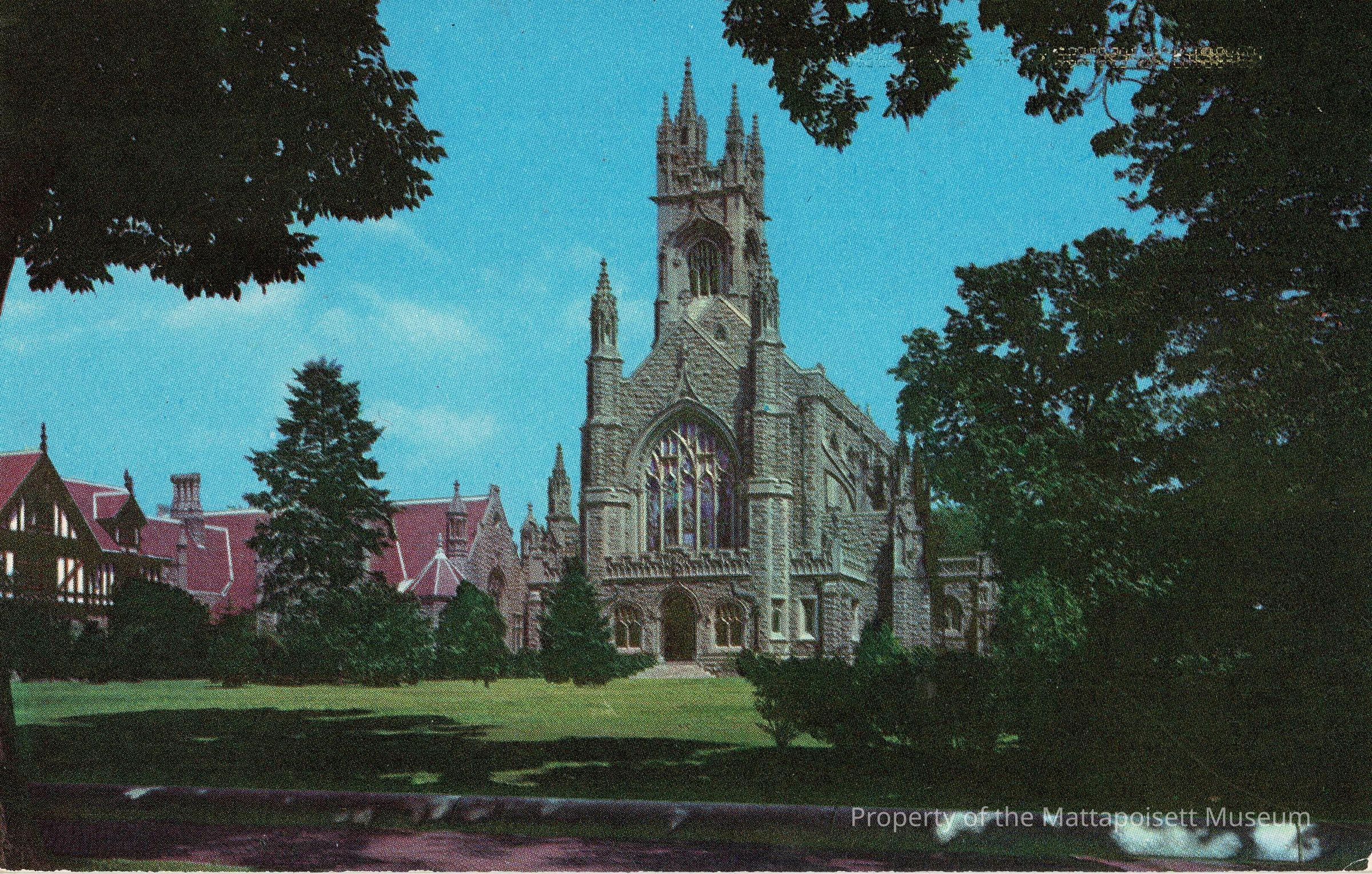 Colored postcard showing Unitarian Memorial Church, Fairhaven, Mass.Collection