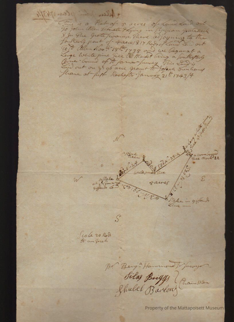 Plan of land containing 5 acres laid out to John Allen in Sippican Grate Neck. Benjamin Hammond Jr., surveyor.Collection