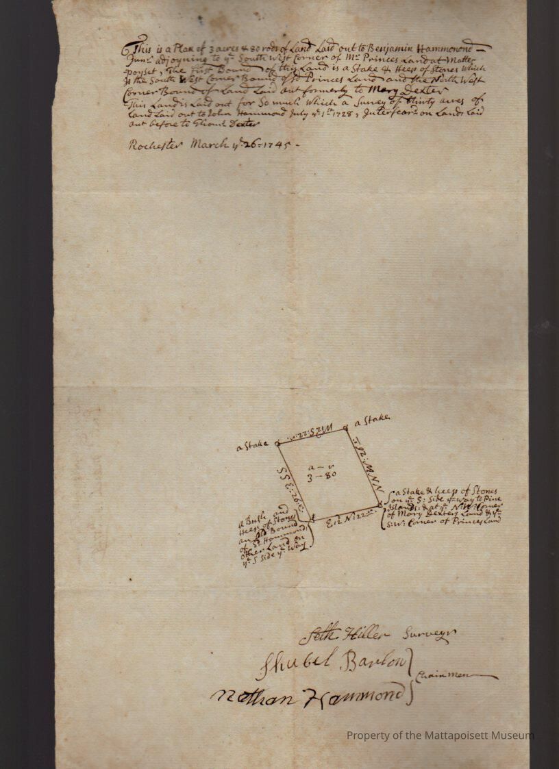 Plan of land containing 3 acres and 80 rods laid out to Benjamin Hammond Jr. Seth Hiller, surveyor.Collection