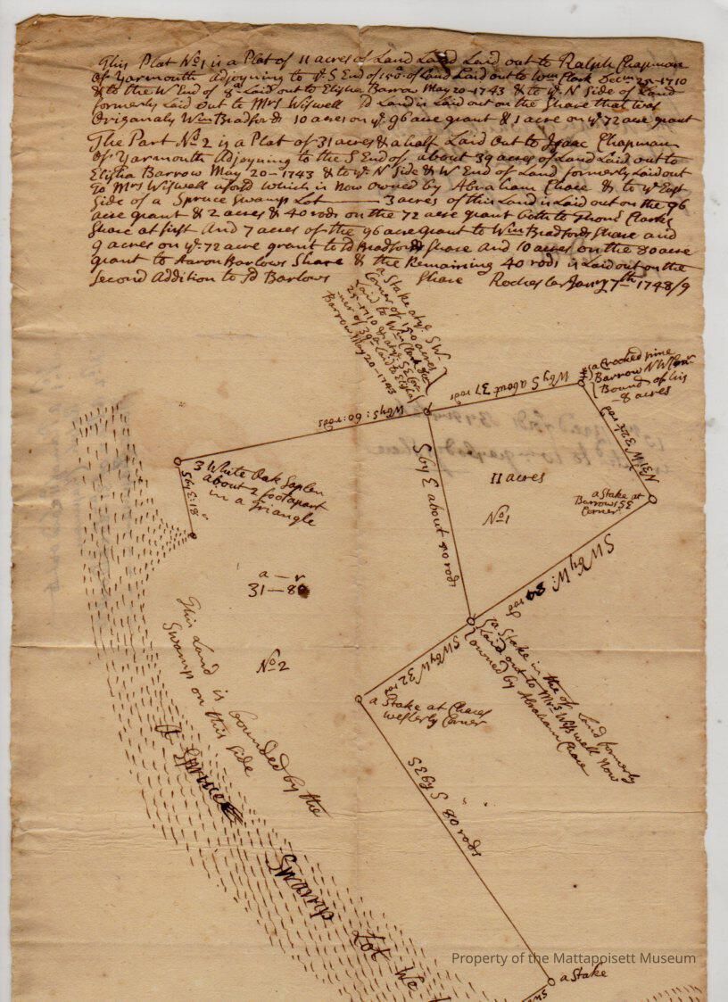 Plan of land containing 11 acres laid out to Ralph Chapman of Yarmouth. Benjamin Hammond, surveyor.Collection