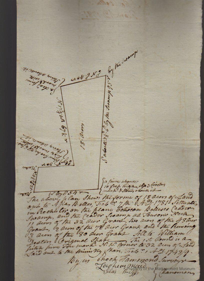 Plan of land containing 18 acres laid out to Assa Bolles. Enoch Hammond, surveyor.Collection