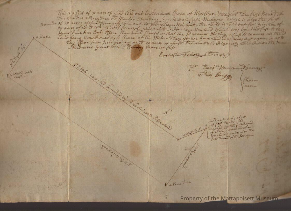 Plan of land containing 30 acres laid out to Abraham Chace of Martha's Vineyard. Benjamin Hammond, surveyor.Collection