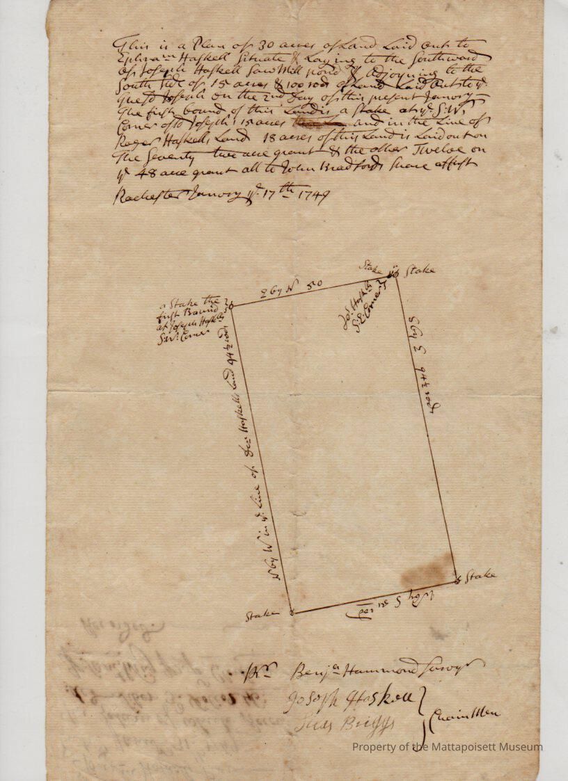 Plan of land containing 30 acres laid out to Ephraim Haskell at Joseph Haskell Saw Mill Pond. Benjamin Hammond, surveyor.Collection