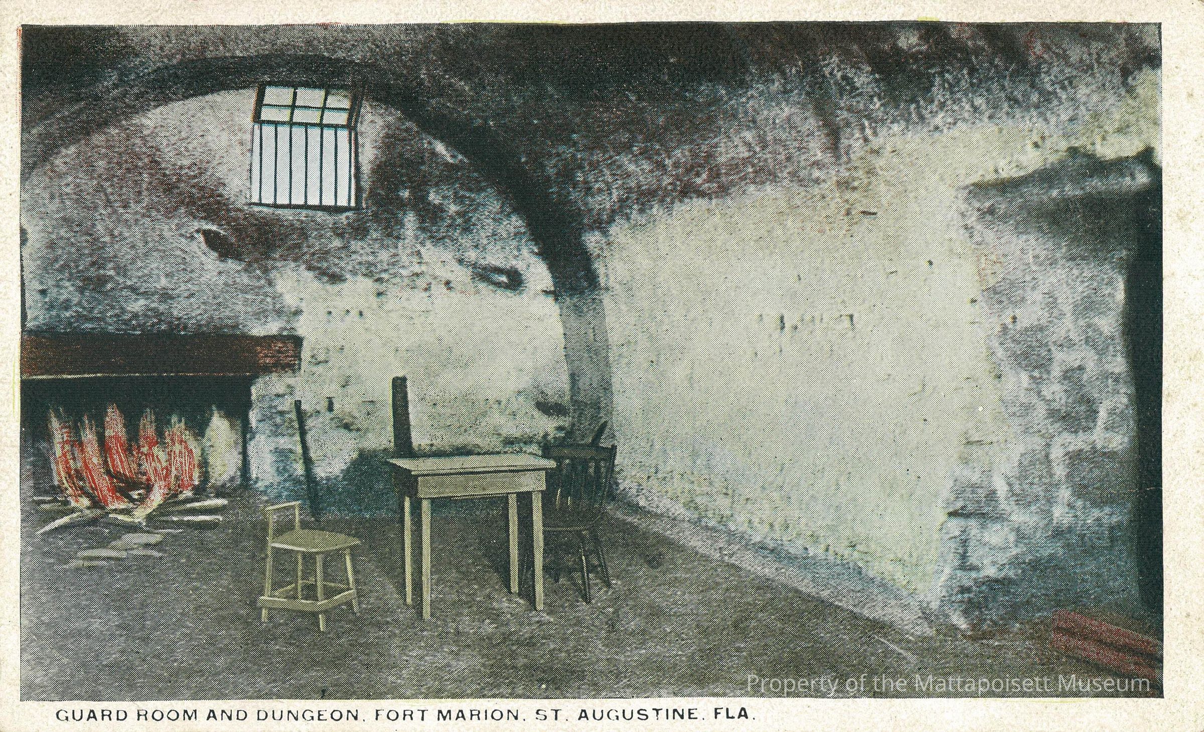 Hand-colored postcard showing Guard Room and Dungeon Fort Marion, St. Augustine, Florida.Collection