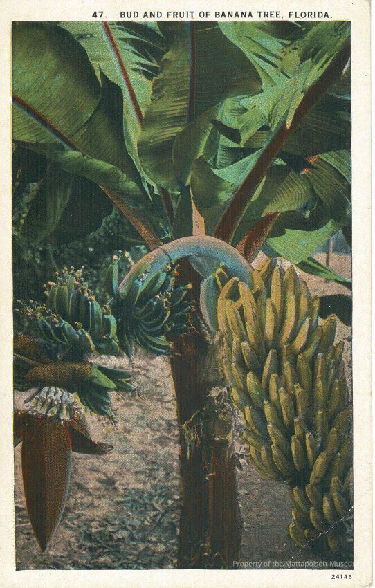 Hand-colored postcard showing Bud and Fruit of Banana Tree, Florida.Collection