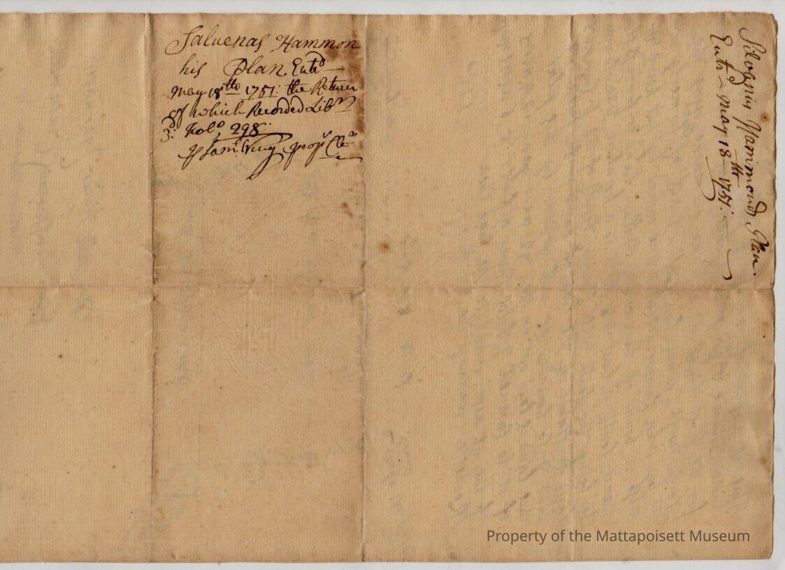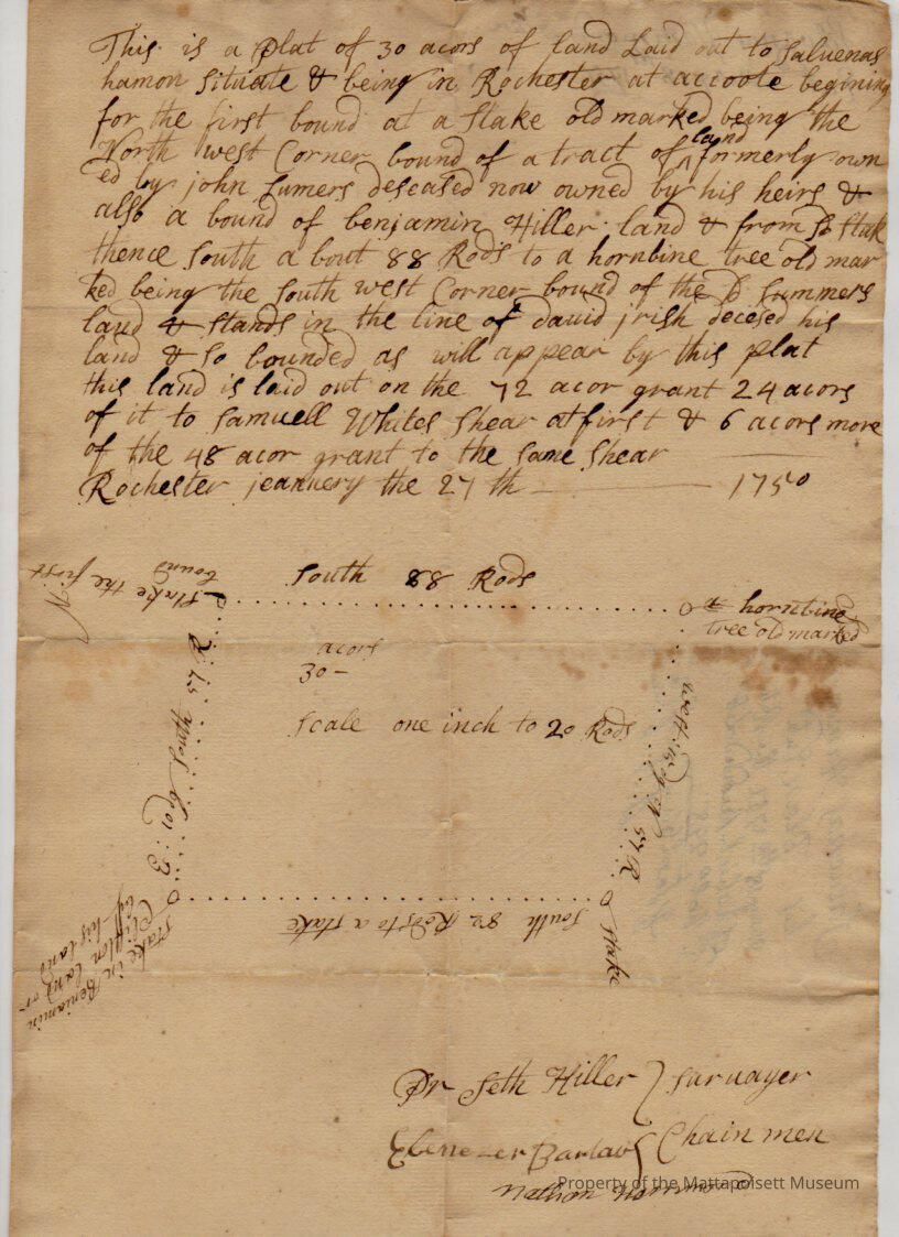 Plan of land containing 30 acres laid out to Salvenas Hamon at Accoote. Seth Hiller, surveyor.Collection
