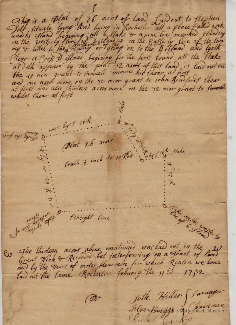 Plan of land containing 2.6 acres laid out to Stephen Dolf at Wekunicks Island. Seth Hiller, surveyor.Collection