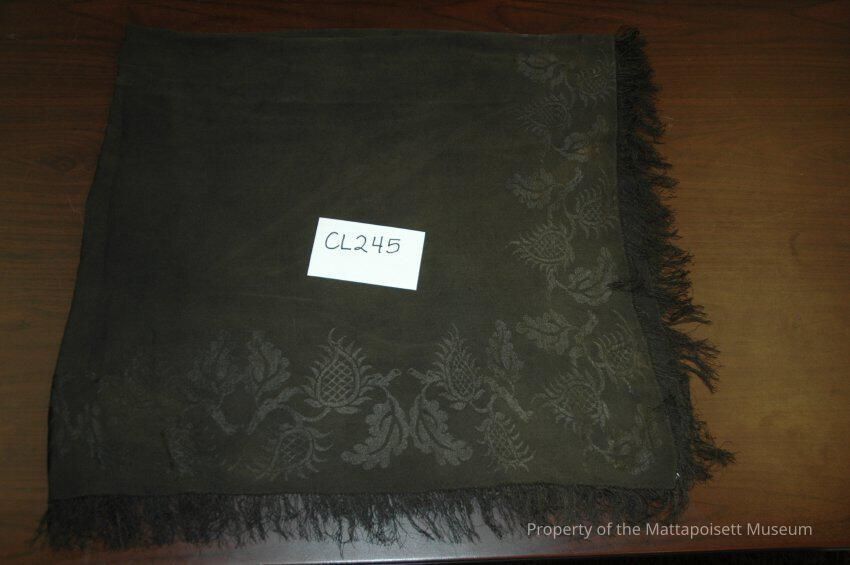 Notes: Notecard: Black fringed shawl. Belonged to Clarissa Rogers, daughter of Capt. Moores Rogers and Mary Cushman Rogers.
