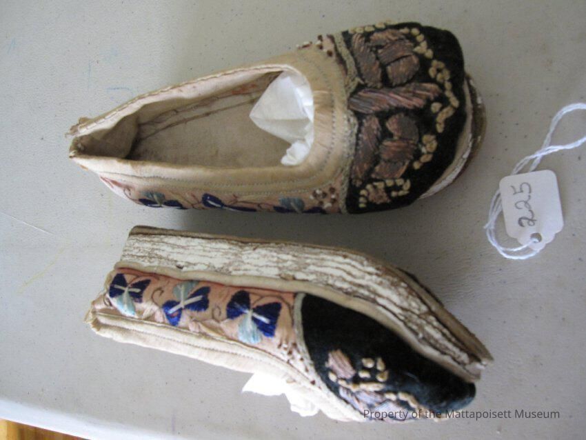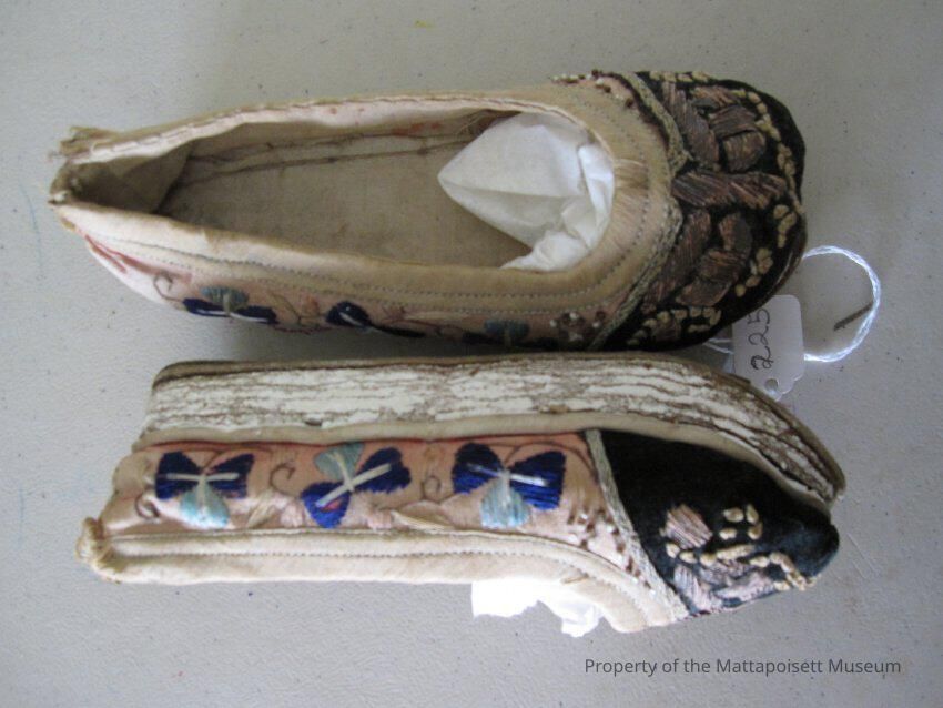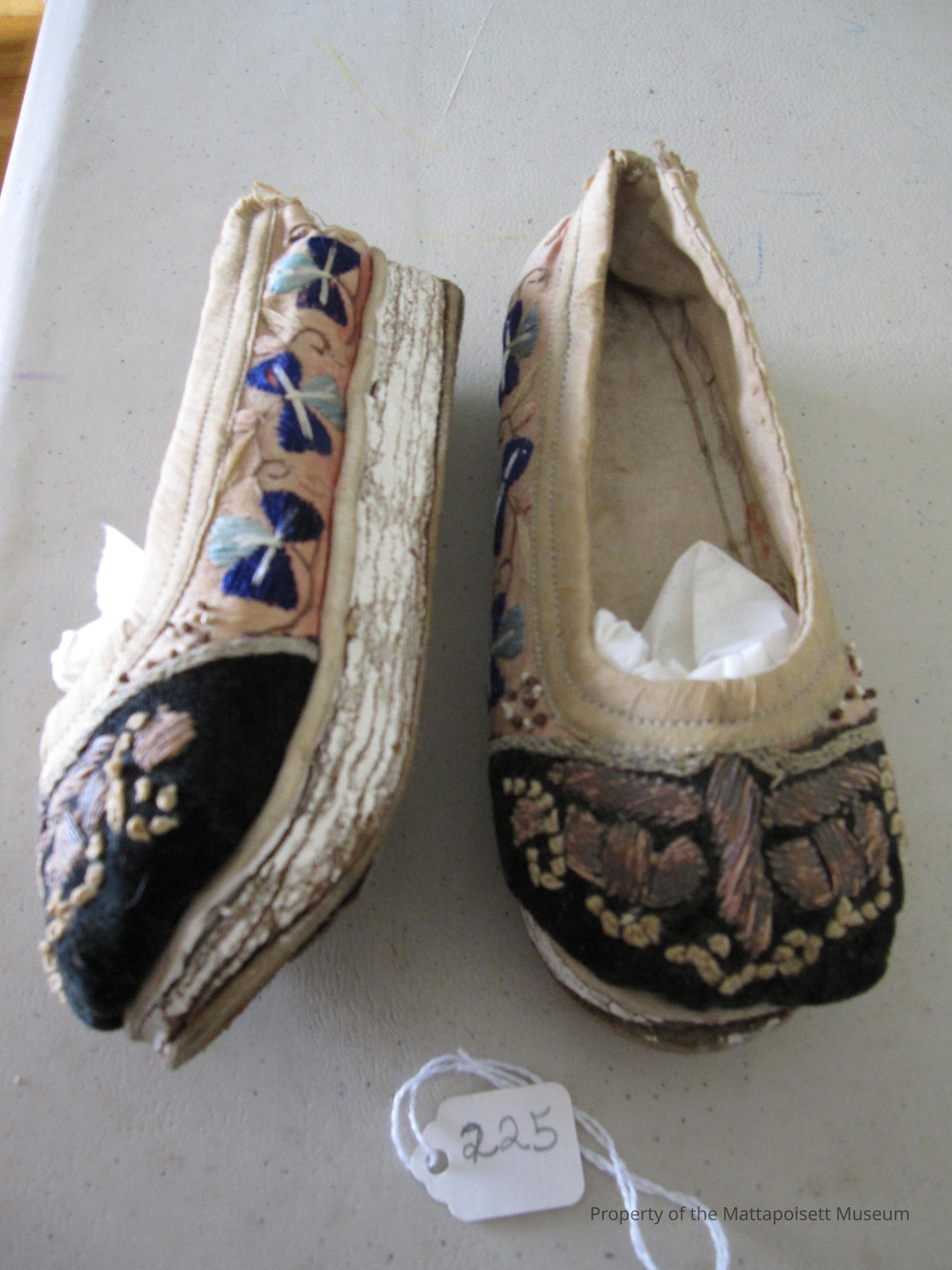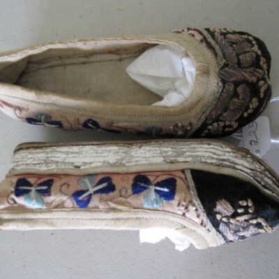 Child's Chinese shoes or slippers. Notecard: Small sized chinese shoes. Purchased in California for Katharine Frizzell 1905.Collection