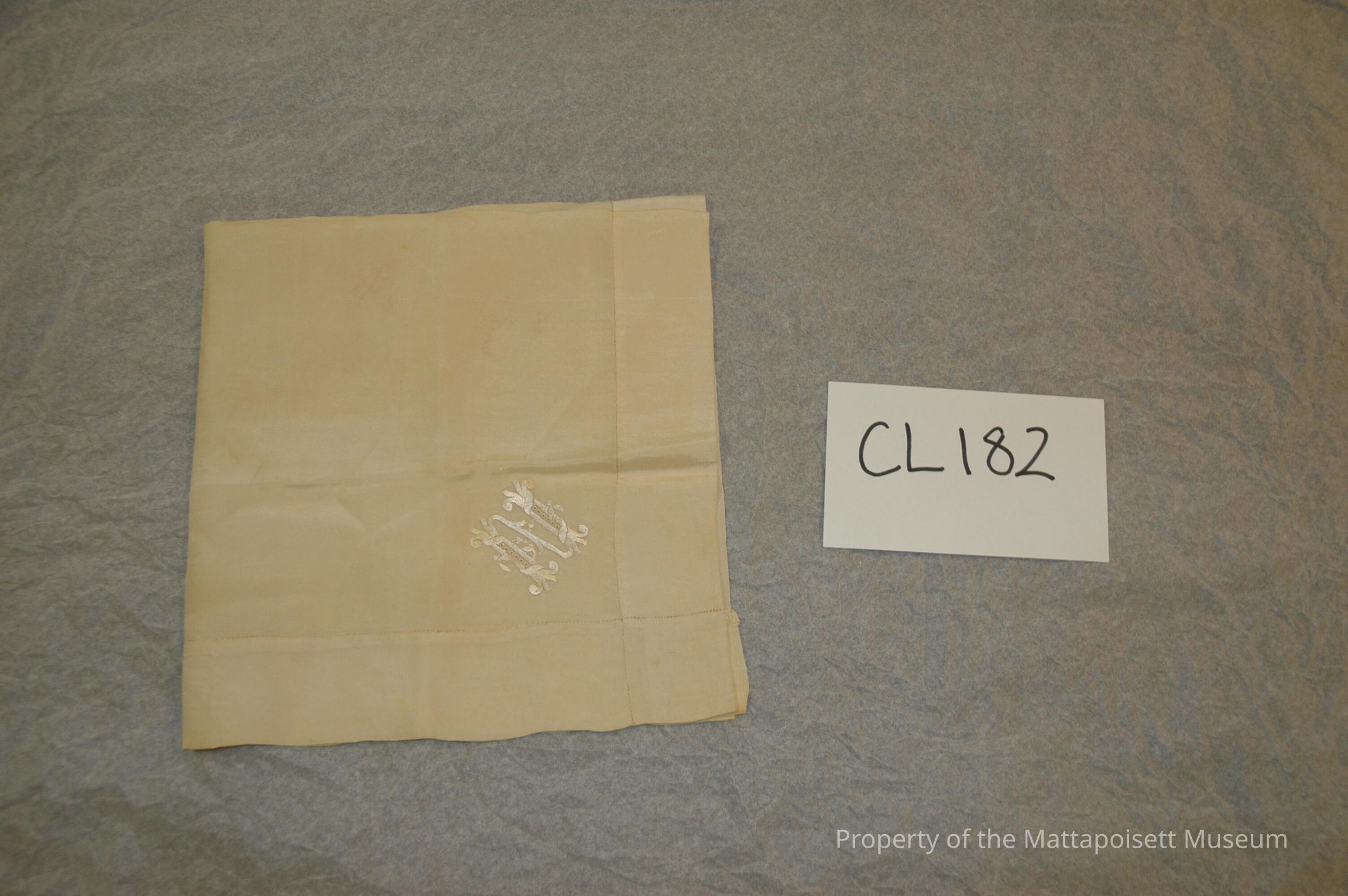 Cream silk handkerchief, initial "M". 18" square, embroidered.Collection