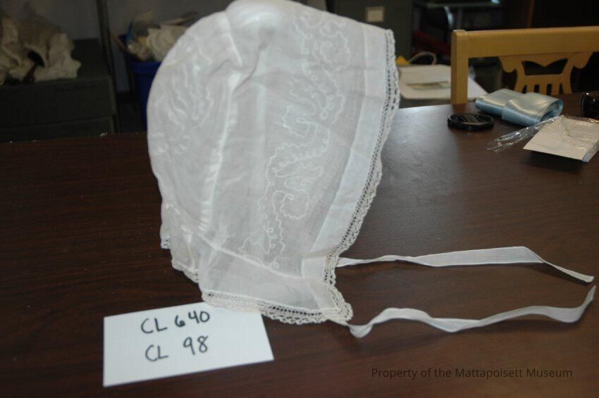 Lady's nightcap. Ruffled edge on crown with lace trim.Collection