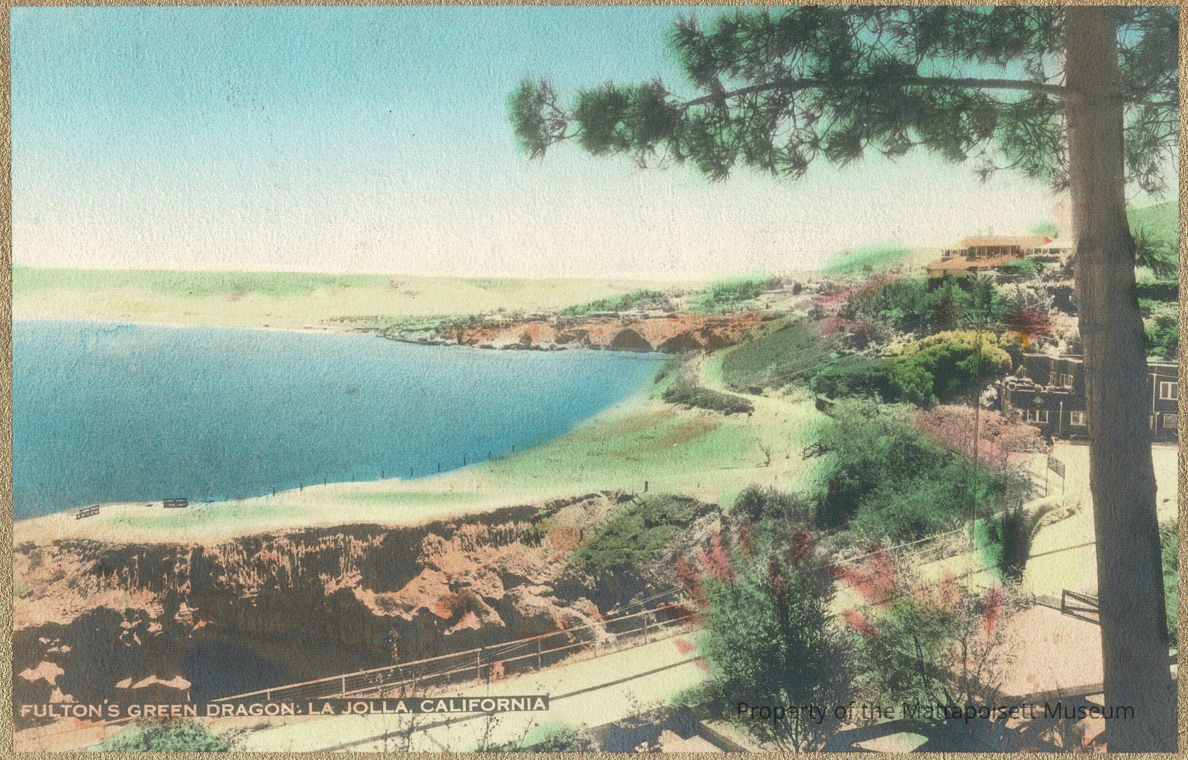 Hand-colored postcard showing Fulton's Green Dragon, La Jolla, California.Collection
